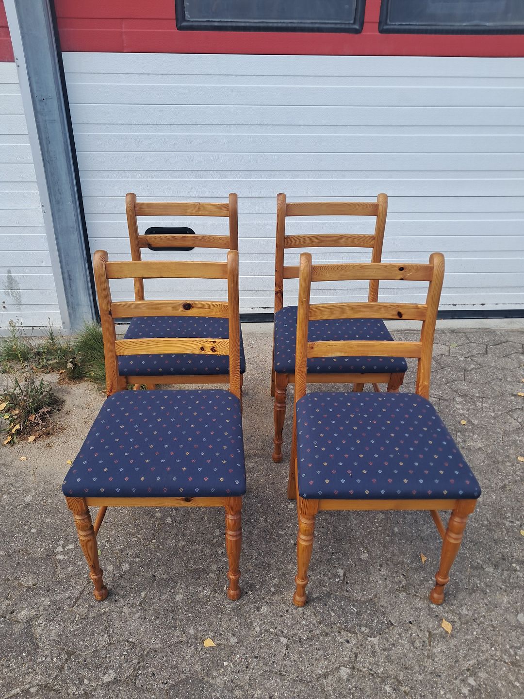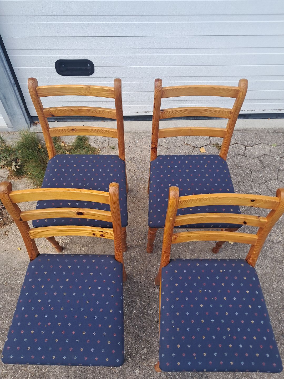 4 Stole i massivt fyrretræ, fra 1990erne. De har brugsspor. Ryghøjde 88cm Sædehøjde 46cm Emne nummer: 77141