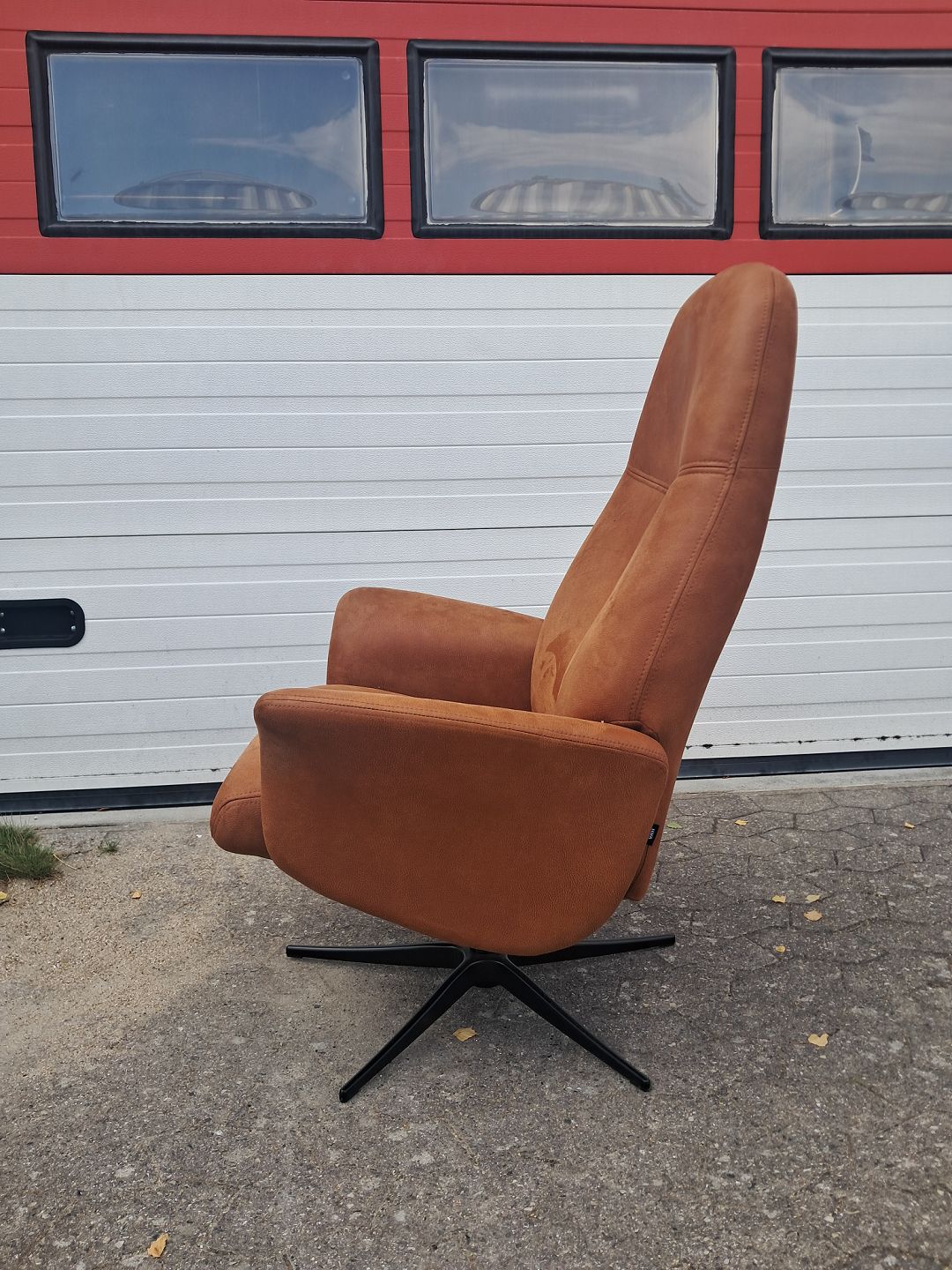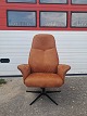 Lænestol i kunstlæder med metalfod, af nyere dato. Den har små brugsspor. Ryghøjde 113cm Sædehøjde 46cm Emne nummer: 77143