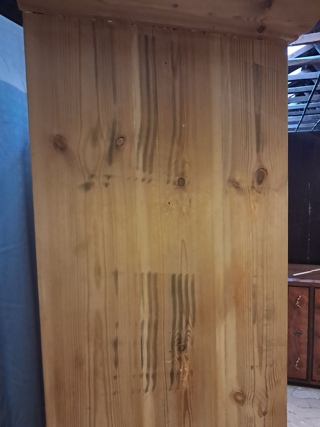 Reol i massivt fyrretræ, fra 1930erne. Den har brugsspor. Højde 198cm Bredde 137cm Dybde 49cm Hylderum : Højde 26cm Bredde 28cm Nederste hylderum : Højde 42cm Bredde 58cmse Se emne nr.91898 Emne nummer: 91897