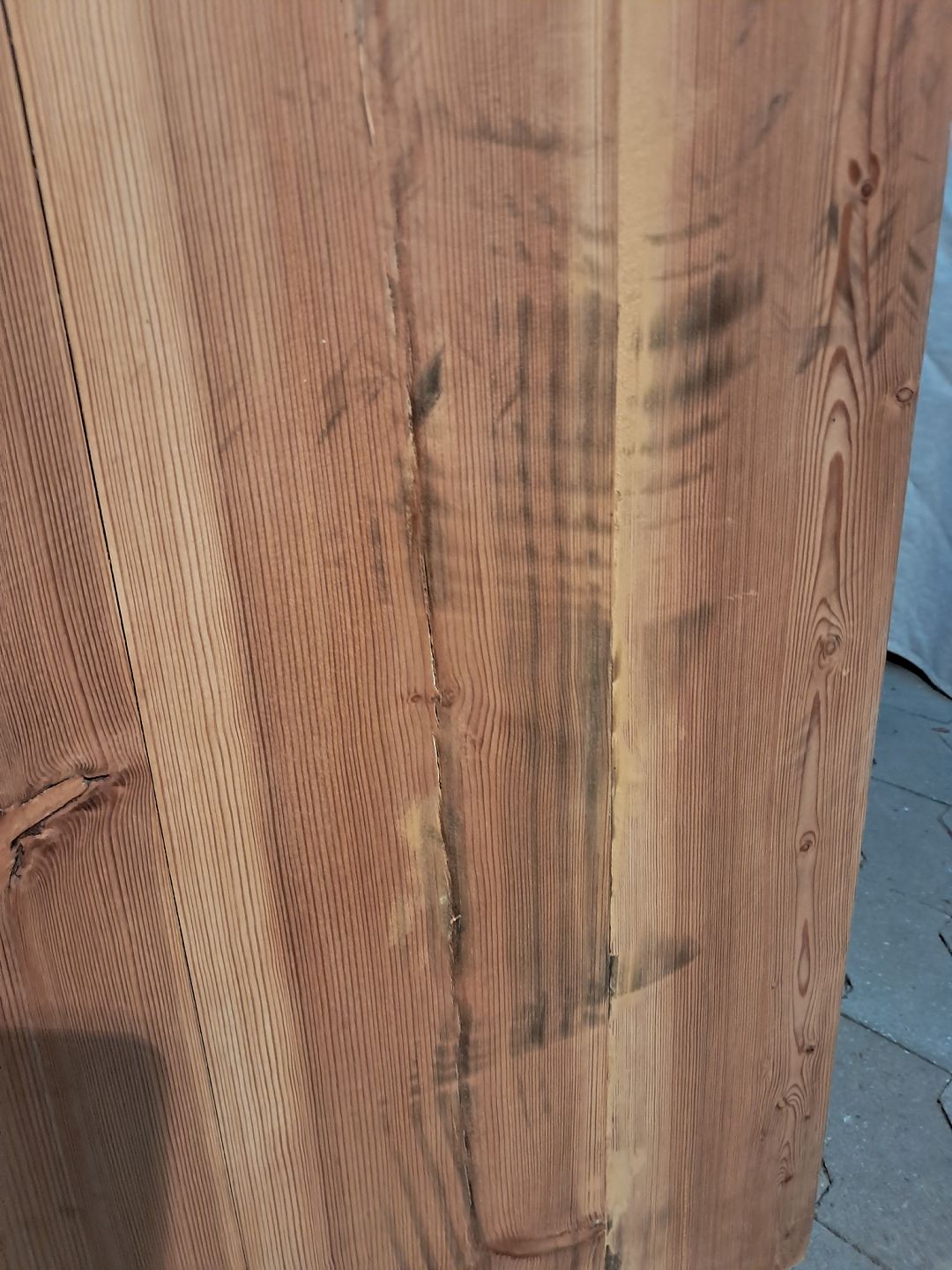 Reol i massivt fyrretræ, fra 1930erne. Den har brugsspor. Højde 198cm Bredde 137cm Dybde 49cm Hylderum : Højde 26cm Bredde 28cm Nederste hylderum : Højde 42cm Bredde 58cm Se emne nr.91897 Emne nummer: 91898