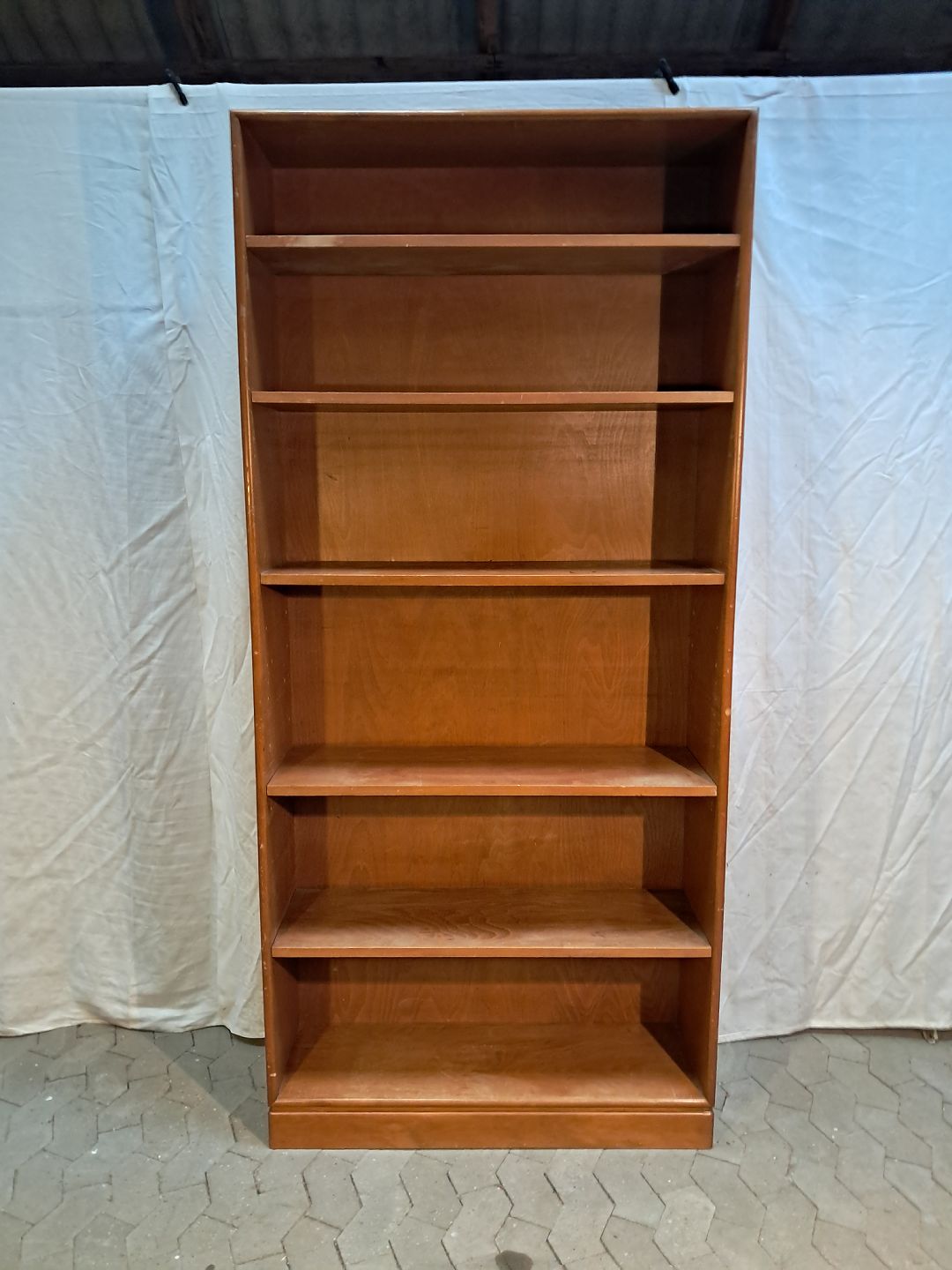 Reol i fineret bøgetræ, fra 1960erne. Den har Breugsspor. Højde 219cm Bredde 100cm Dybde 32cm Emne nummer: 91901