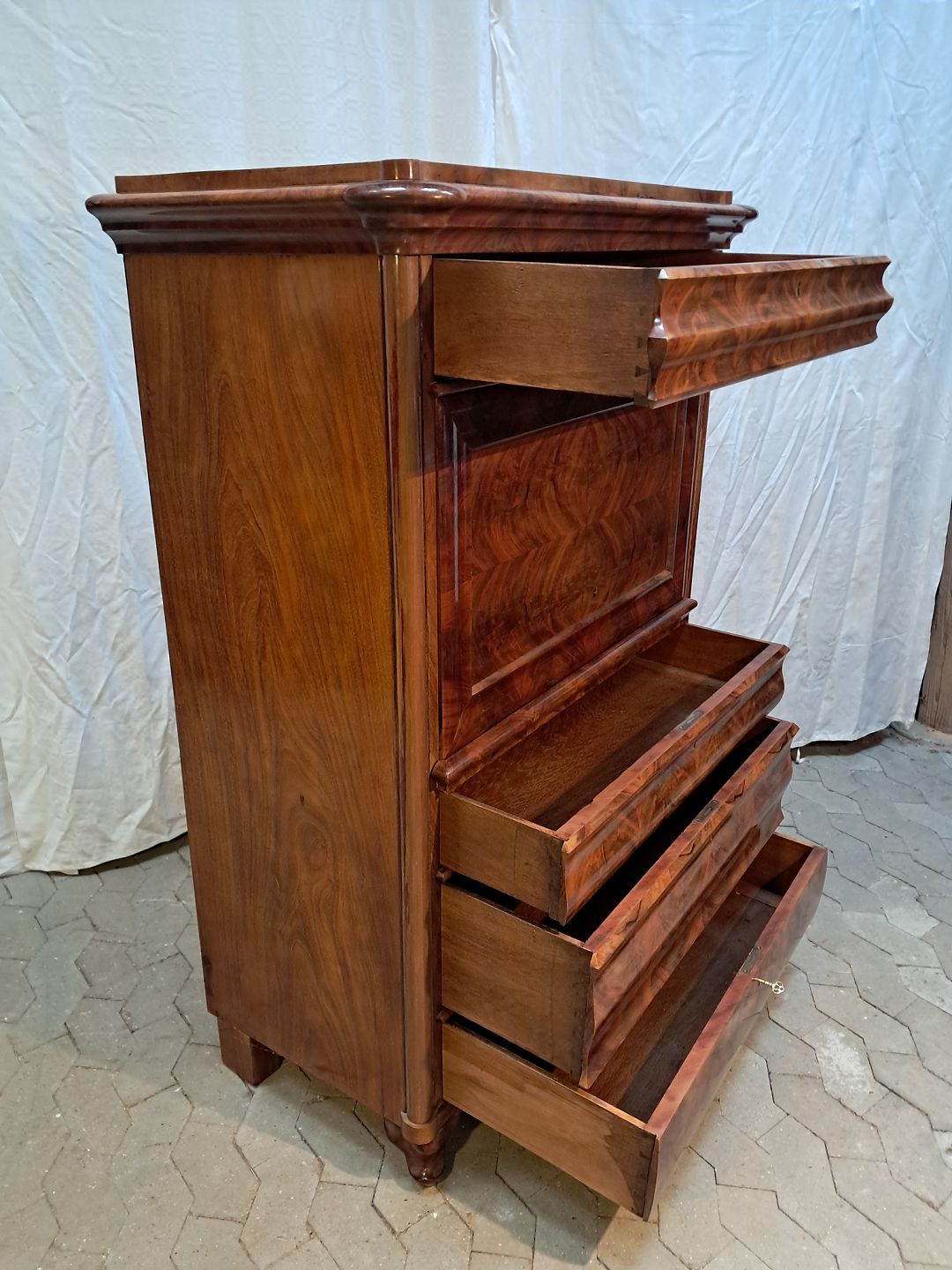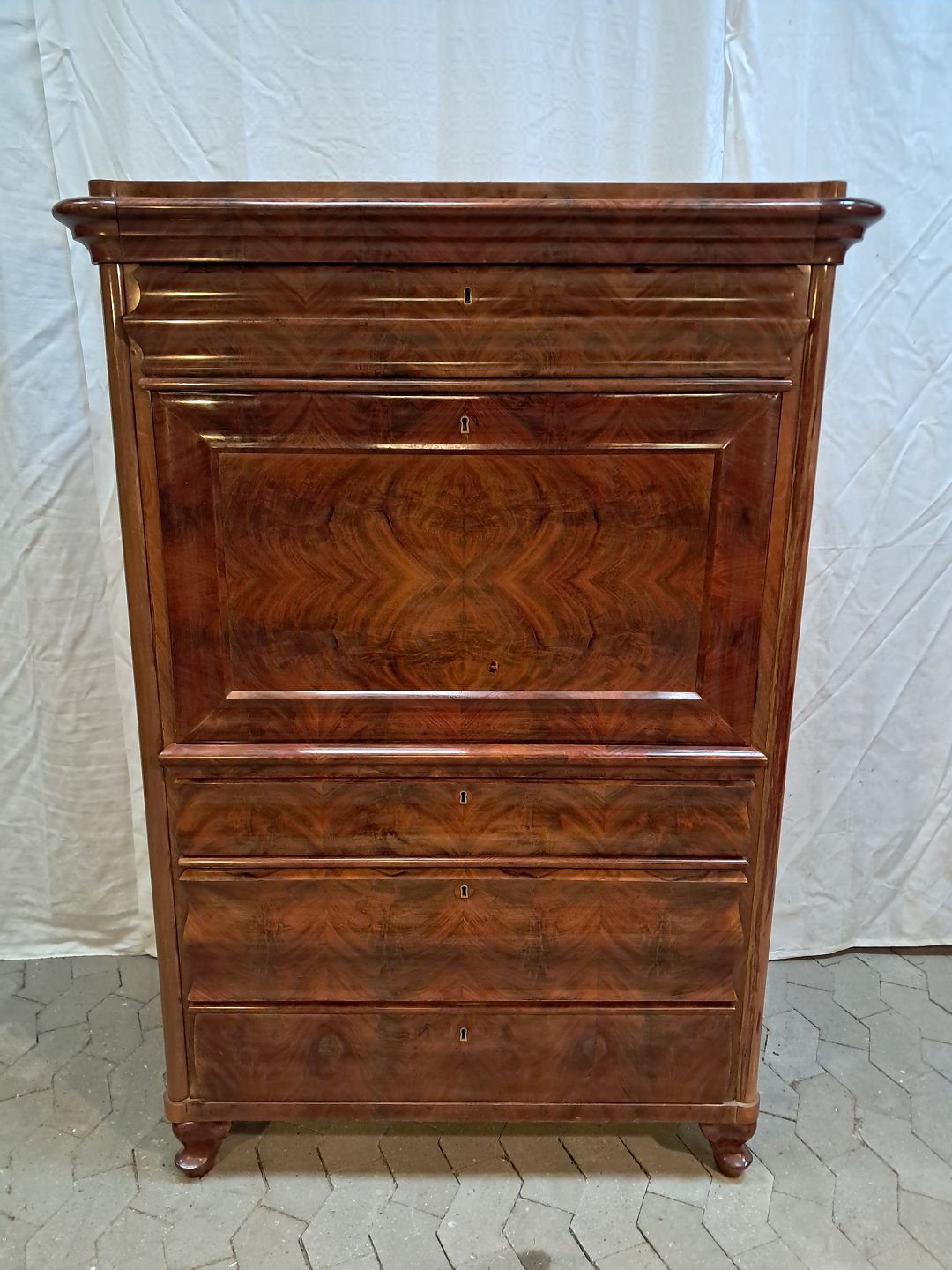 Skuffemøbel i fineret mahogni, fra 1900erne. Den har patina. Højde 153cm Bredde 106cm Dybde 56cm Emne nummer: 91911