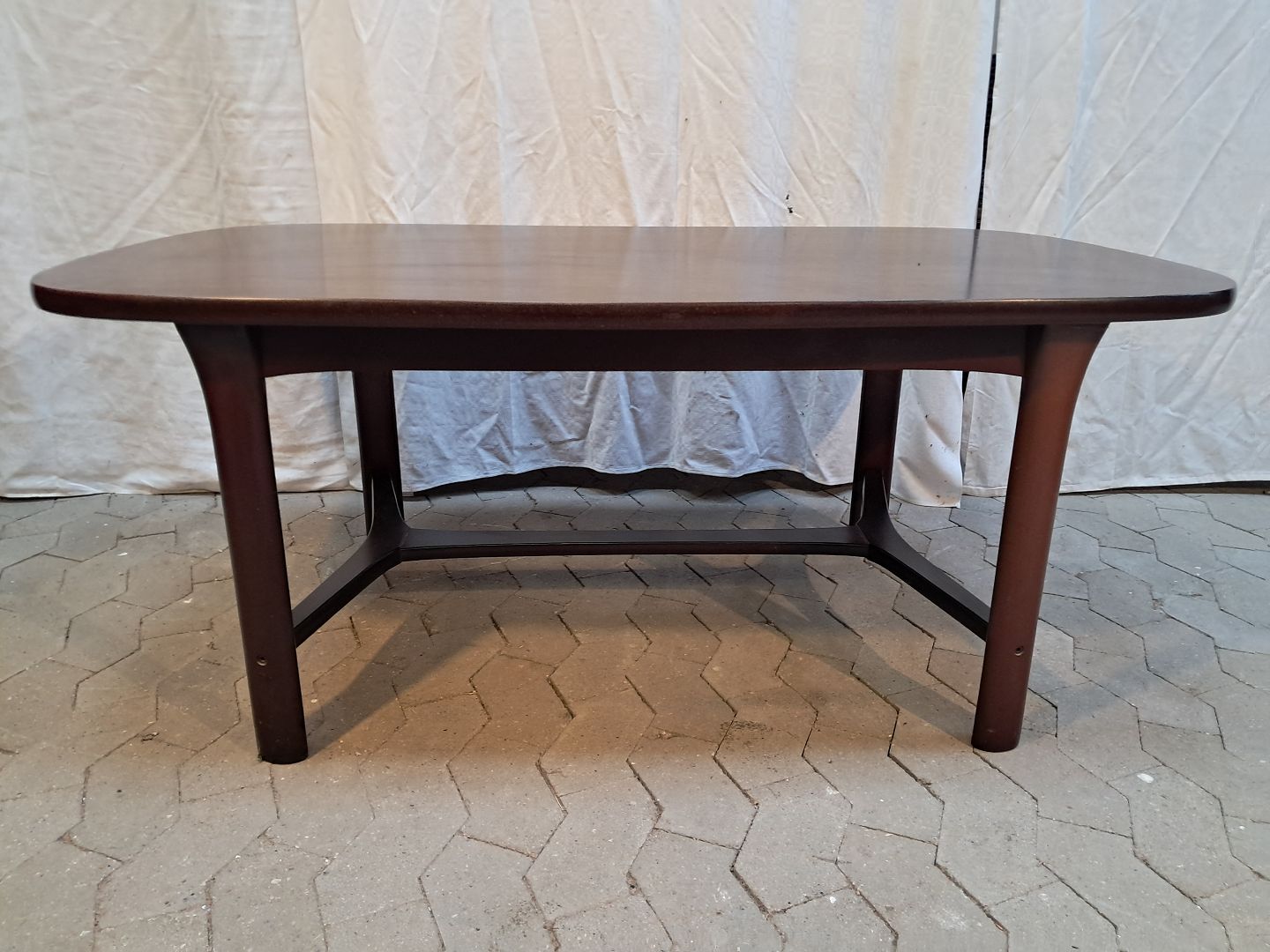 Sofabord i fineret bøgetræ, fra 2000erne. Det har brugsspor. Højde 57cm Bredde 79cm Kængde 134cm Emne nummer: 91926