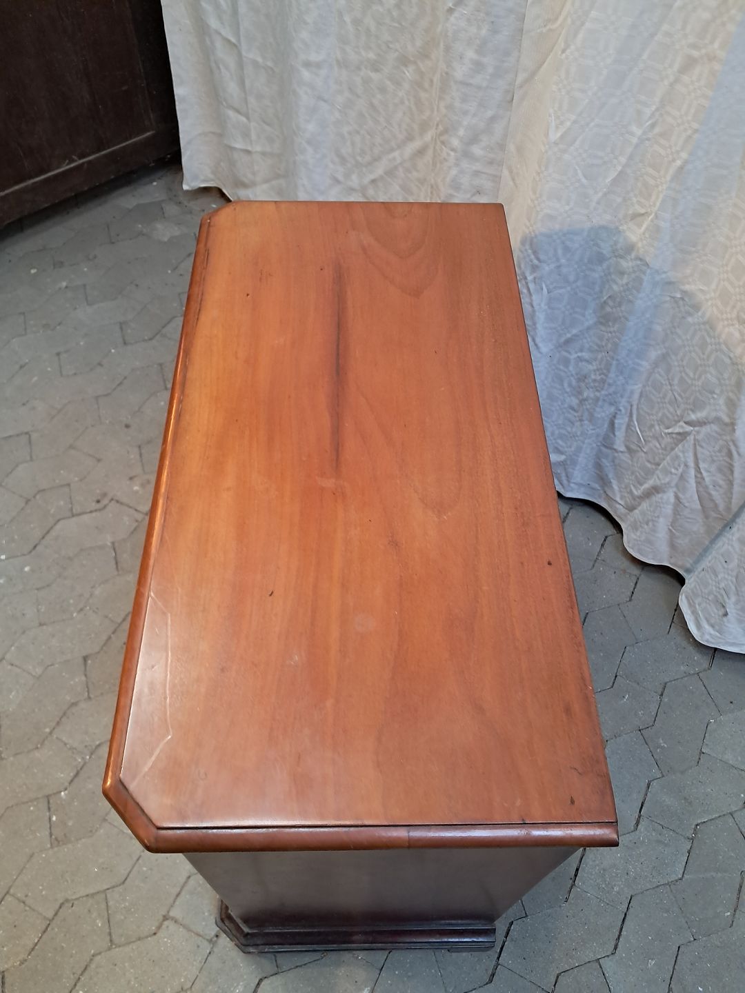 Kommodei fineret mahogni, fra 1910erne. Den har brugsspor. Højde 85cm Bredde 91cm Dybde 45cm Emne nummer: 91934