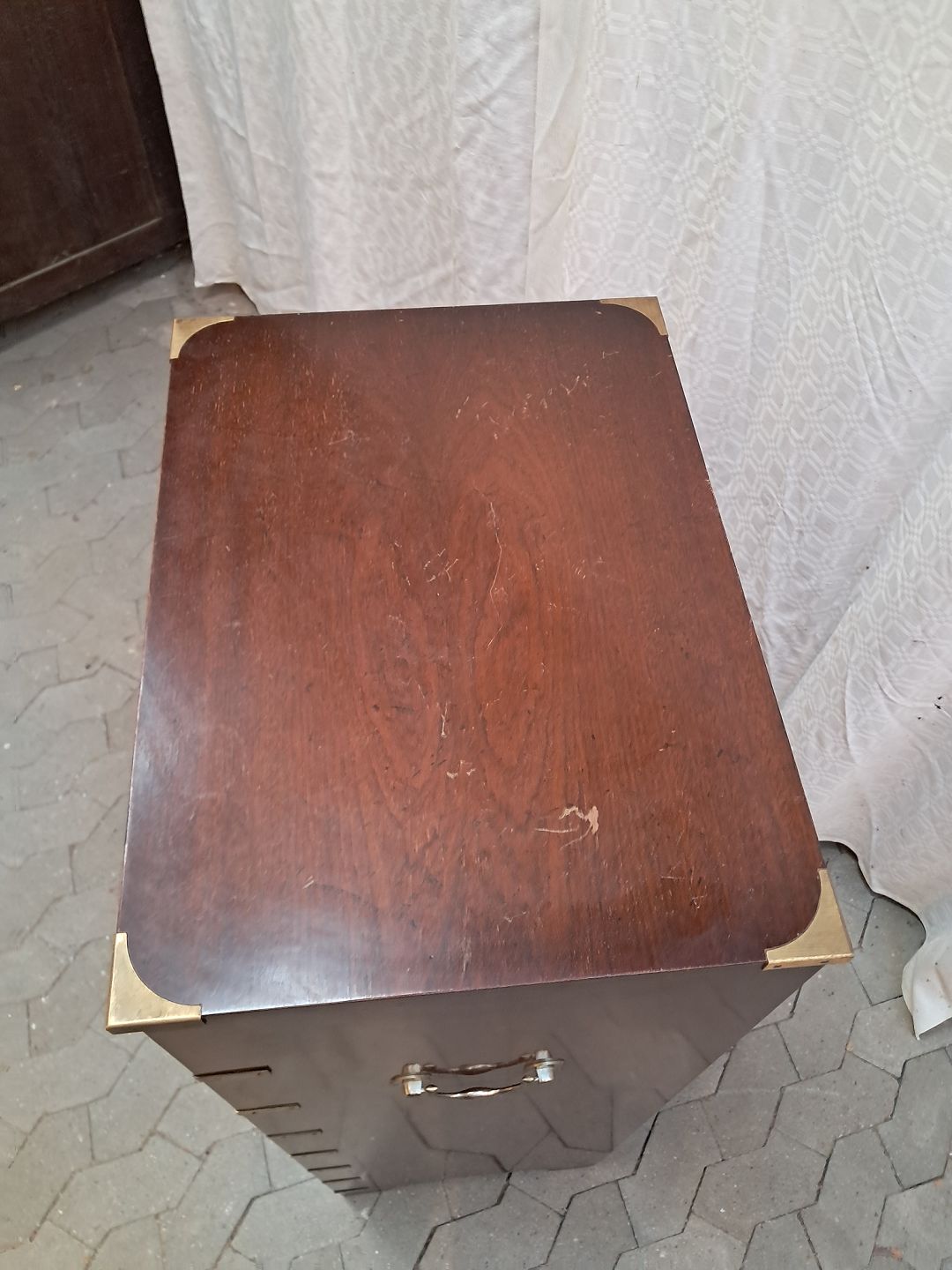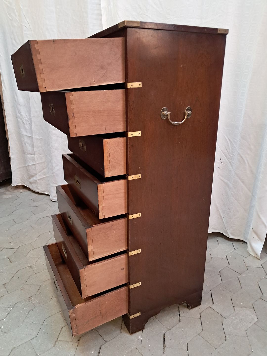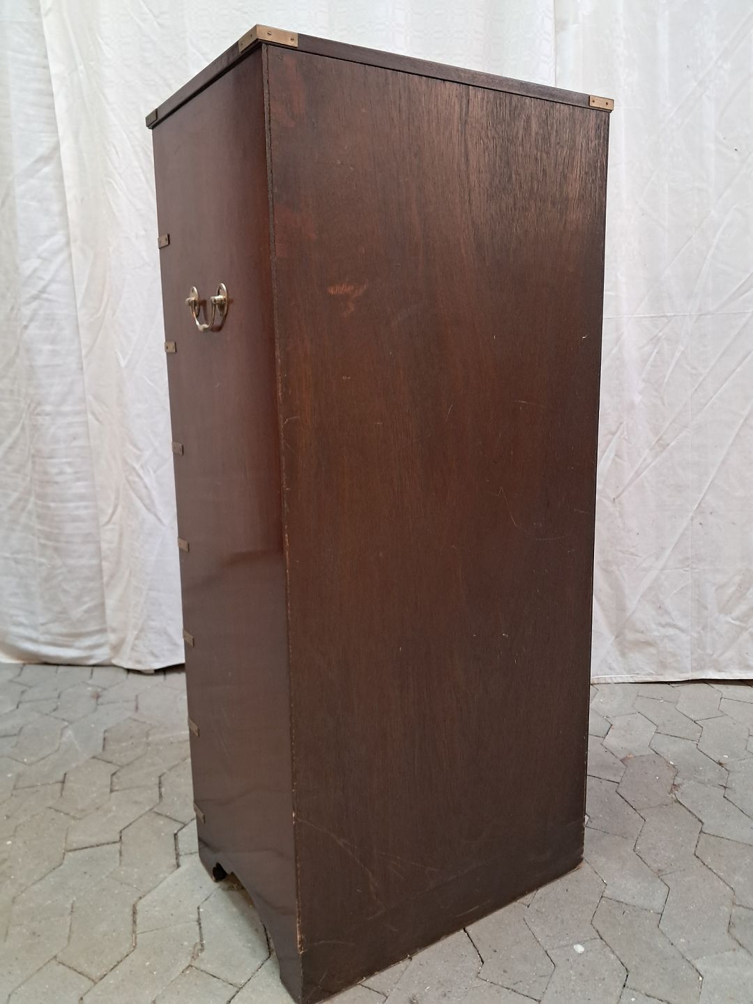 Military kommode i fineret mahogni, fra 1980erne. Den har brugsspor. Højde 125cm Bredde 57cm Dybde 41cm Emne nummer: 91942