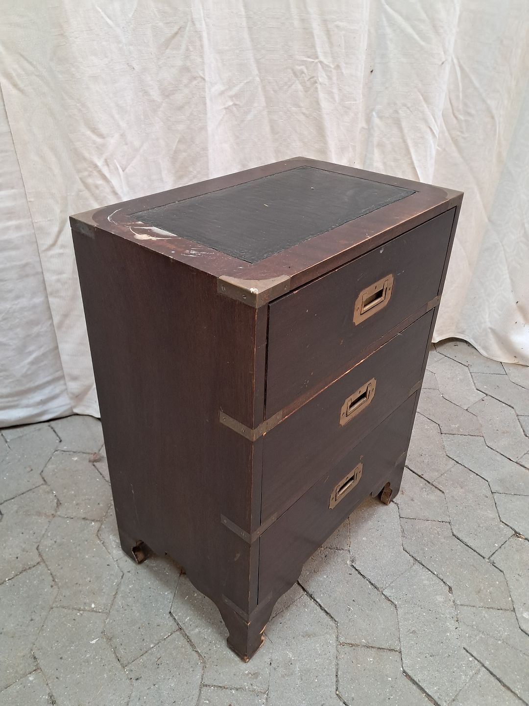 Military kommode i fineret mahogni, fra 1980erne. Den har brugsspor. Højde 60cm Bredde 45cm Dybde 30cm Emne nummer: 91943
