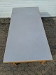Skrivebord i egetræ med linoleumsplade, fra 1980erne. Det har brugsspor. Højde 72cm Bredde 180cm Dybde 90cm Højde fra gulv til underkant. Emne nummer: 77170