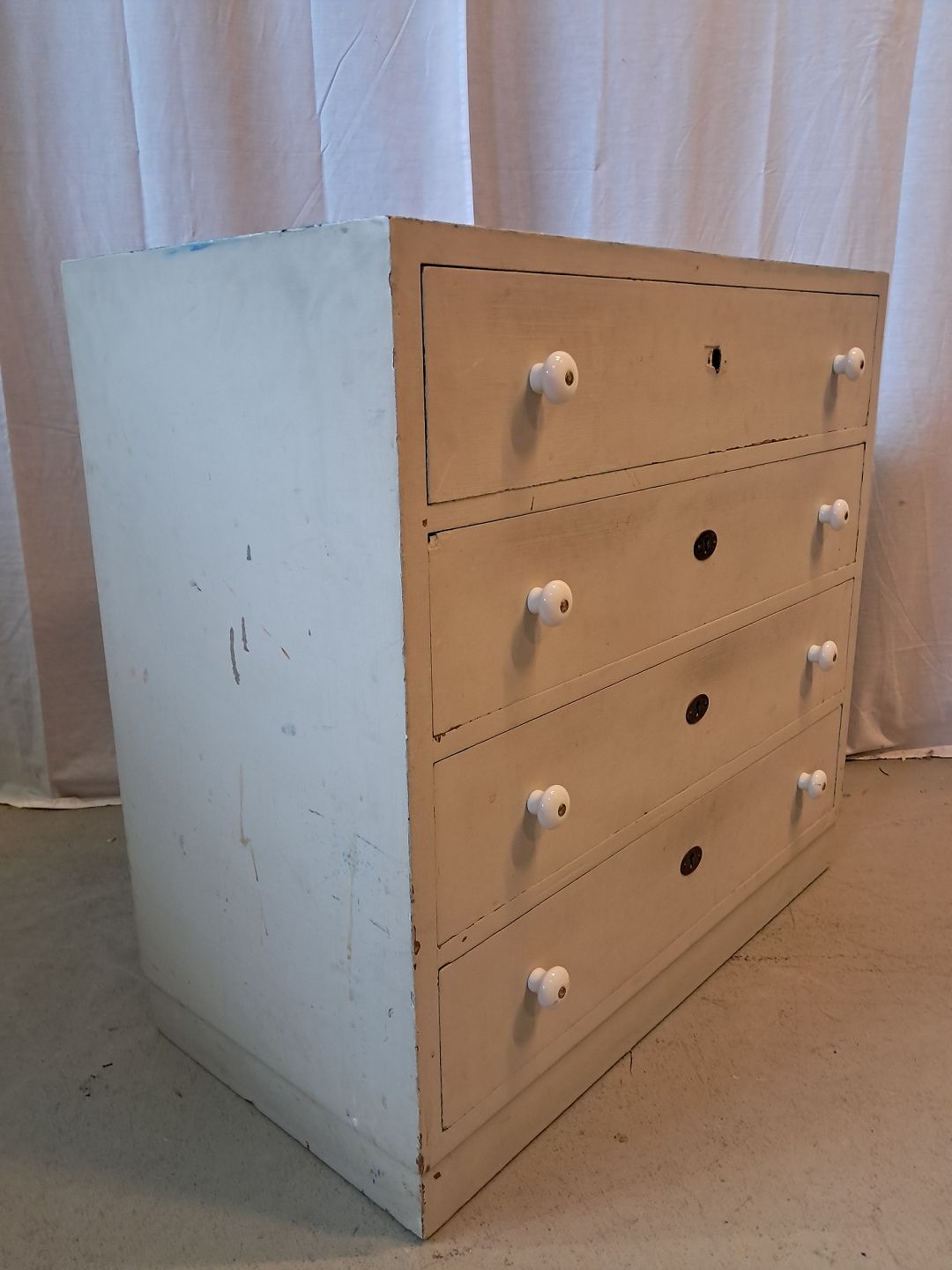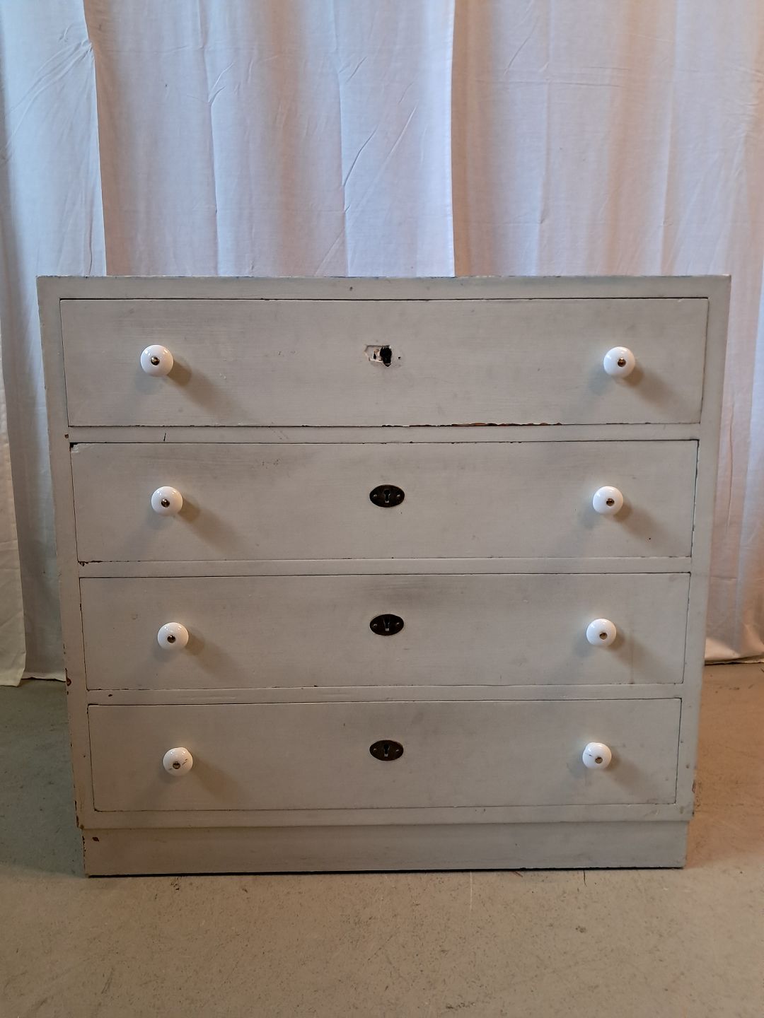Malet kommode fra 1940erne. Den har brugsspor og trænger til at blive peppet op. Højde 76cm Bredde 80cm Dybde 40cm Emne nummer: 77288