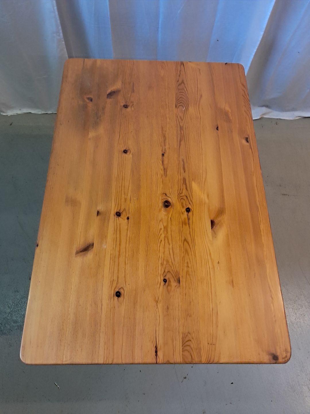 Bord i massivt fyrretræ, fra 1980erne. Det har brugsspor. Højde 70cm Bredde 65cm Længde 98cm Emne nummer: 77289