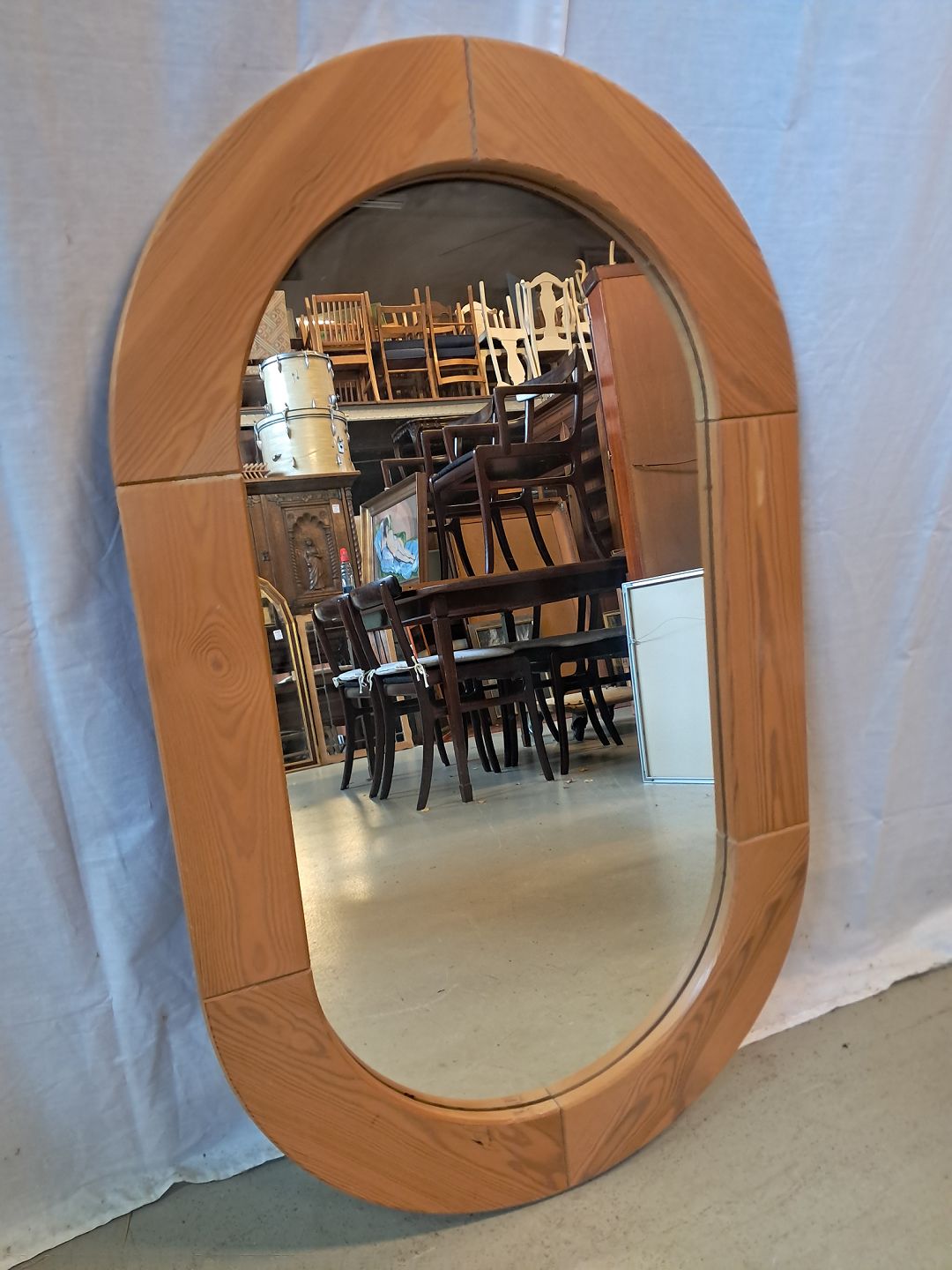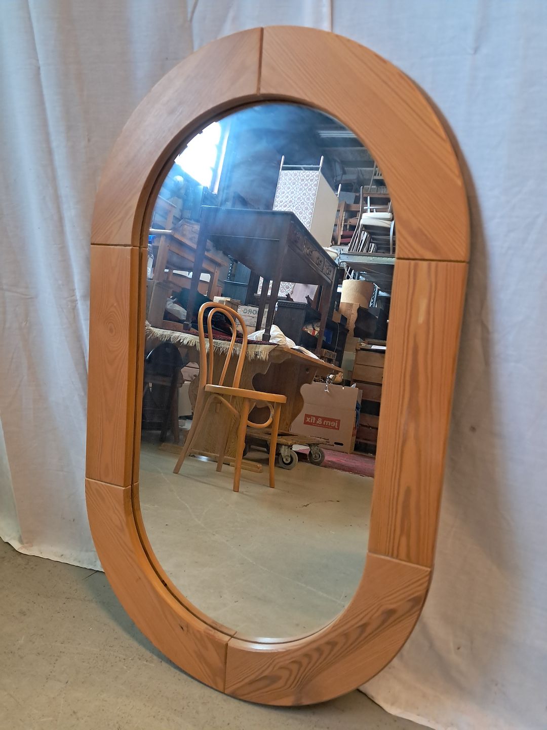 Spejl i massivt fyrretræ, fra 1980erne. Det har brugsspor. Højde 100cm Bredde 60cm Emne nummer: 77336