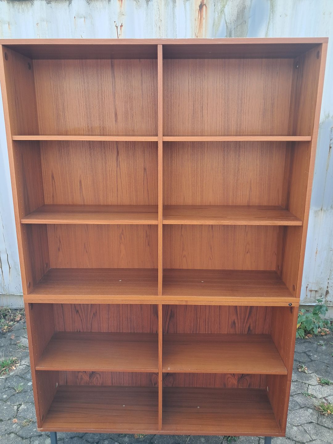 2 Delt reol i fineret teaktræ, fra 1970erne. Den har brugsspor. Højde 198cm Bredde 120cm Dybde 31cm Emne nummer: 77341