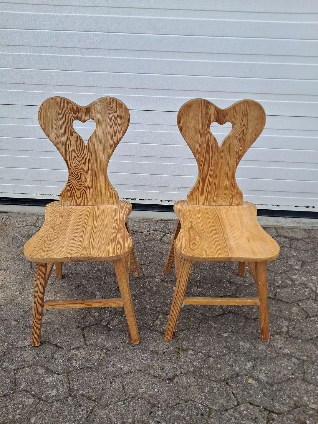 2 Stole i massivt fyrretræ, fra 1980erne. De har brugsspor og er lidt løse i ryggen. Ryghøjde 87cm Sædehøjde 46cm Emne nummer: 77351