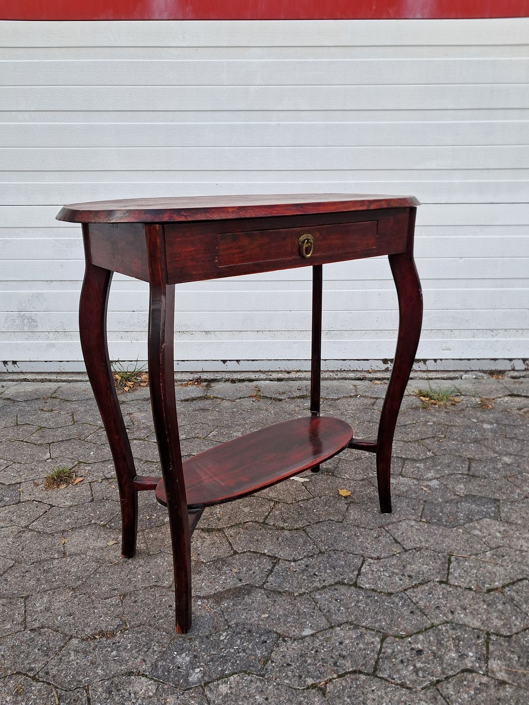 Bord i bejdset massivt fyrretræ, fra 1920erne. Det har brugsspor. Højde 77cm Bredde 75cm Dybde 44cm Emne nummer: 77357