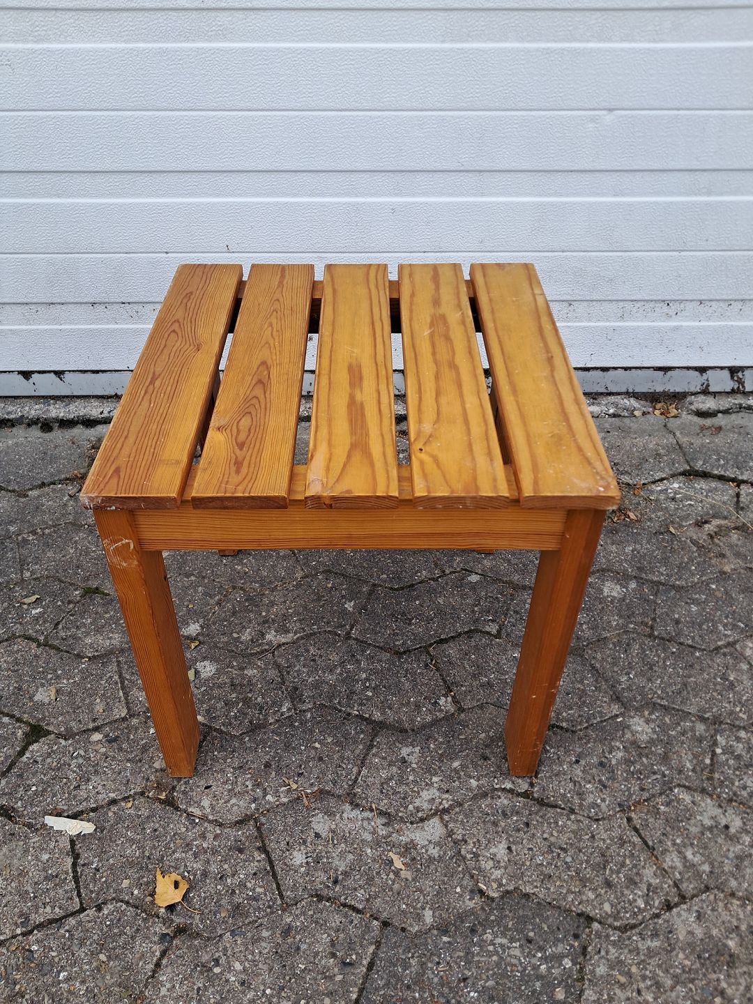Skammel i massivt fyrretræ, fra 1980erne.