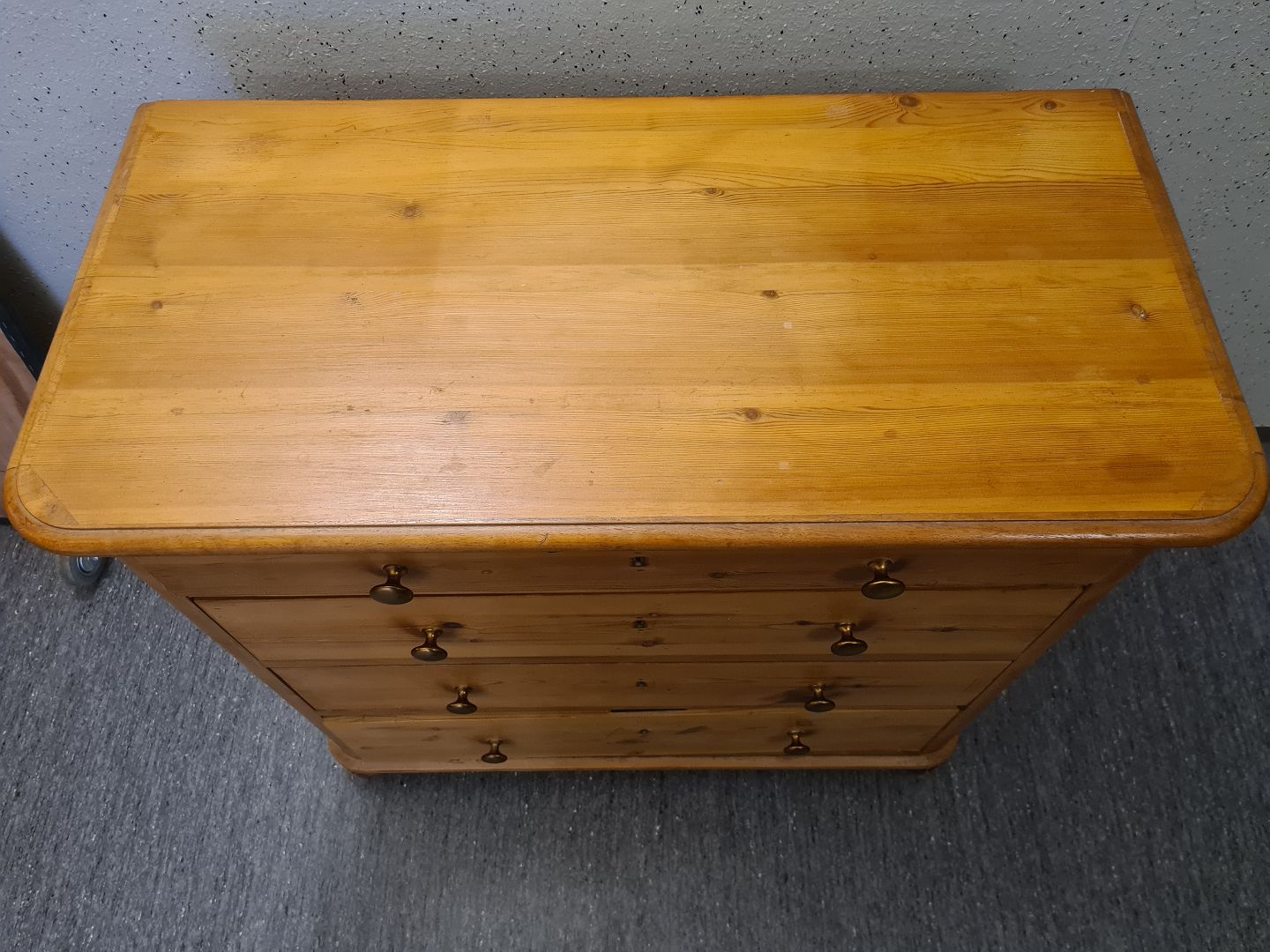 Kommode fra 1940'erne I massiv fyrretræ. Den har brugsspor og lugter lidt af røg. Højde 88 cm. Bredde 94 cm. Dybde 46 cm. Emne nummer: 93000