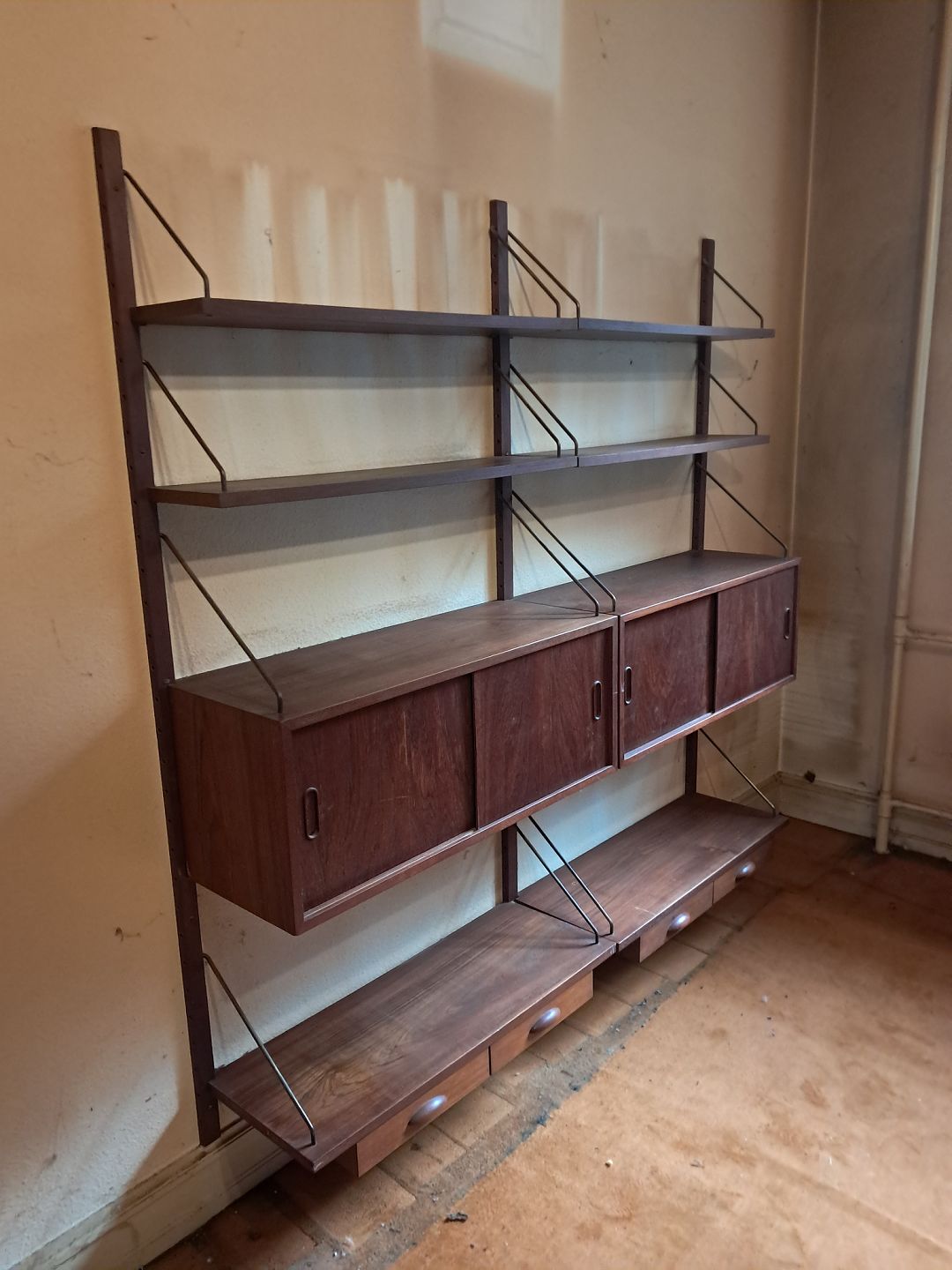 Vangesystems reol i fineret teaktræ, fra 1960erne.
