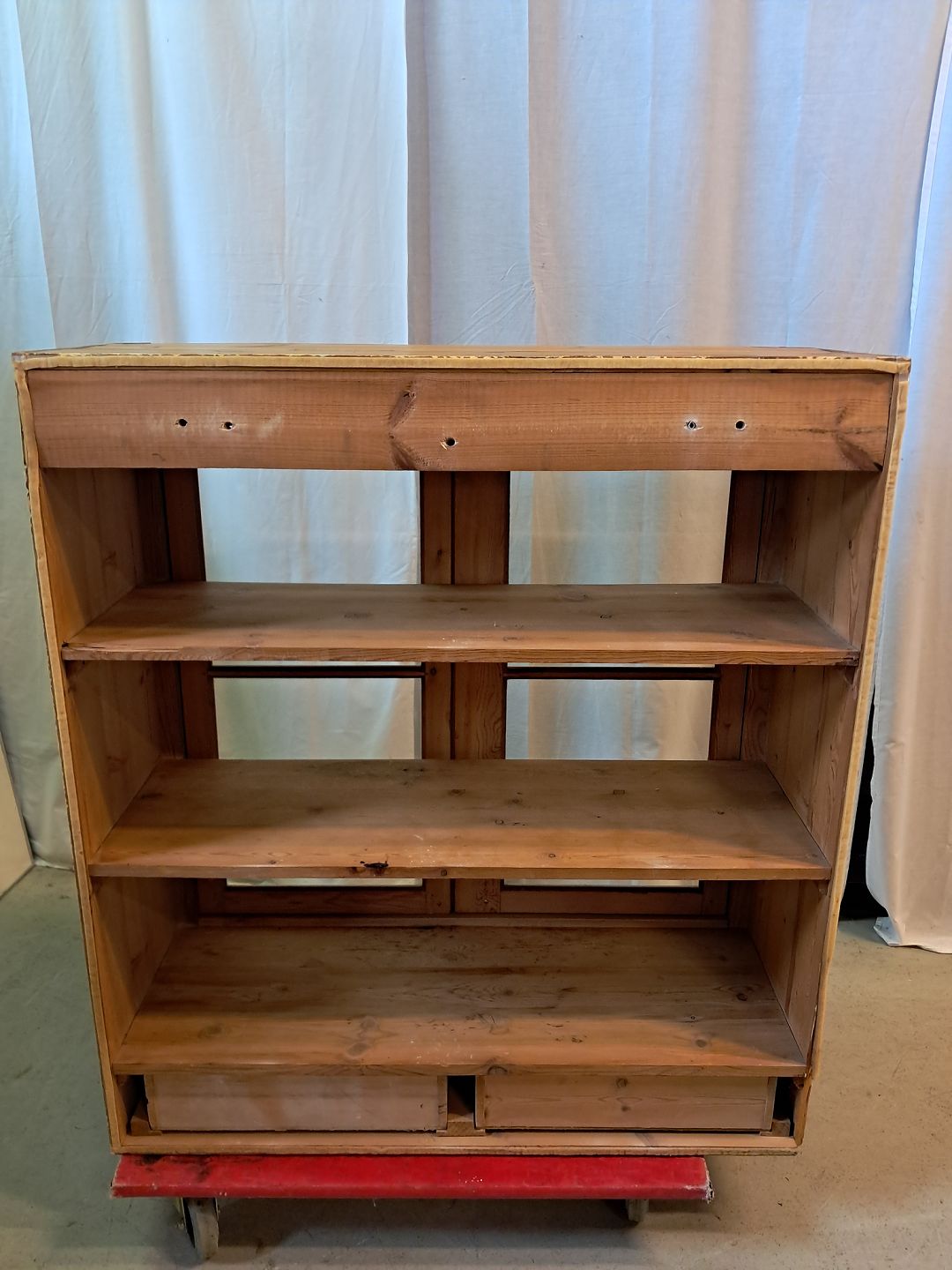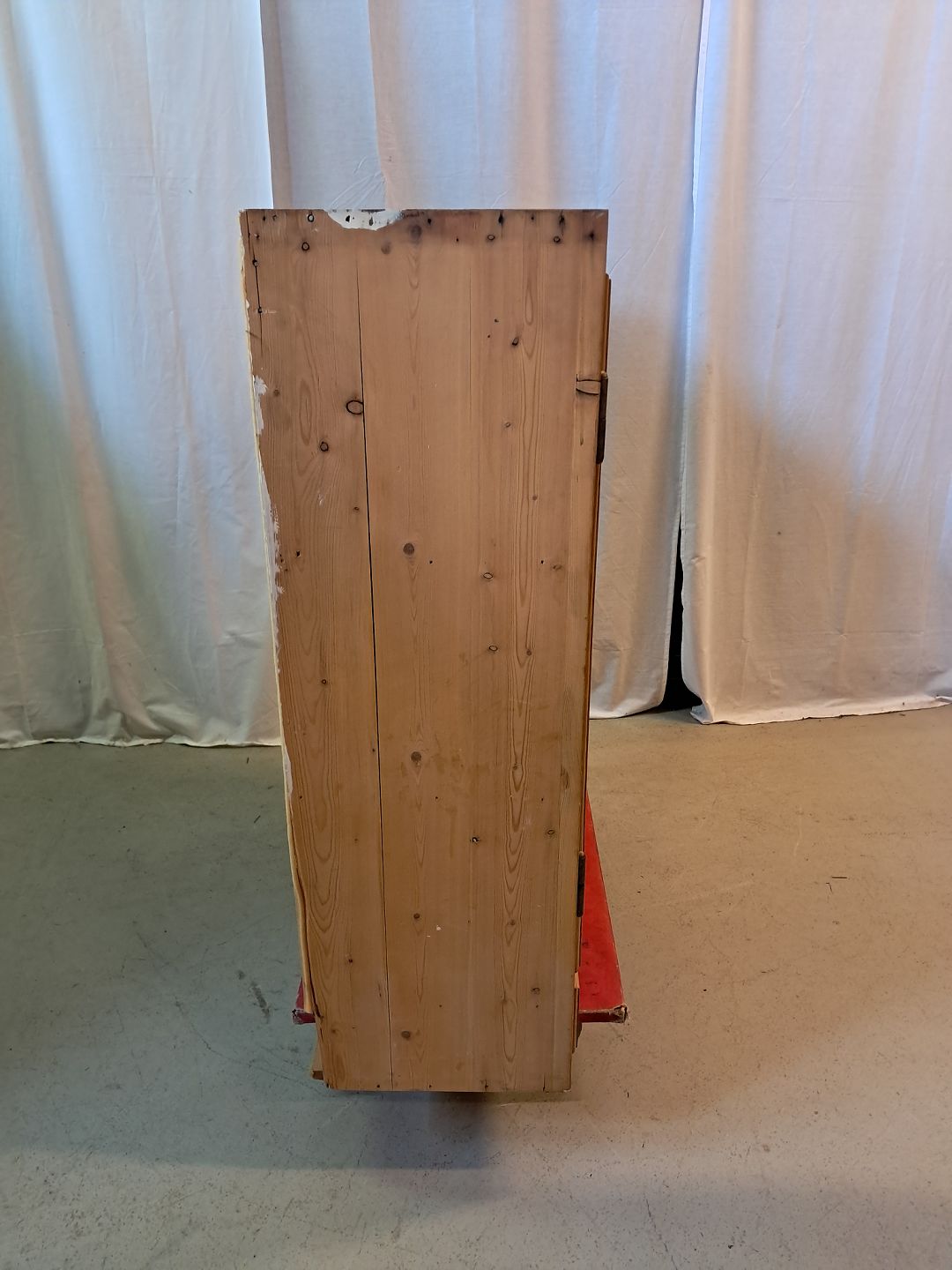 Gammelt køkkenskab i massivt fyrretræ, fra 1920erne. Det har brugsspor. Højde 100cm Bredde 90cm Dybde 32cm Emne nummer: 77414