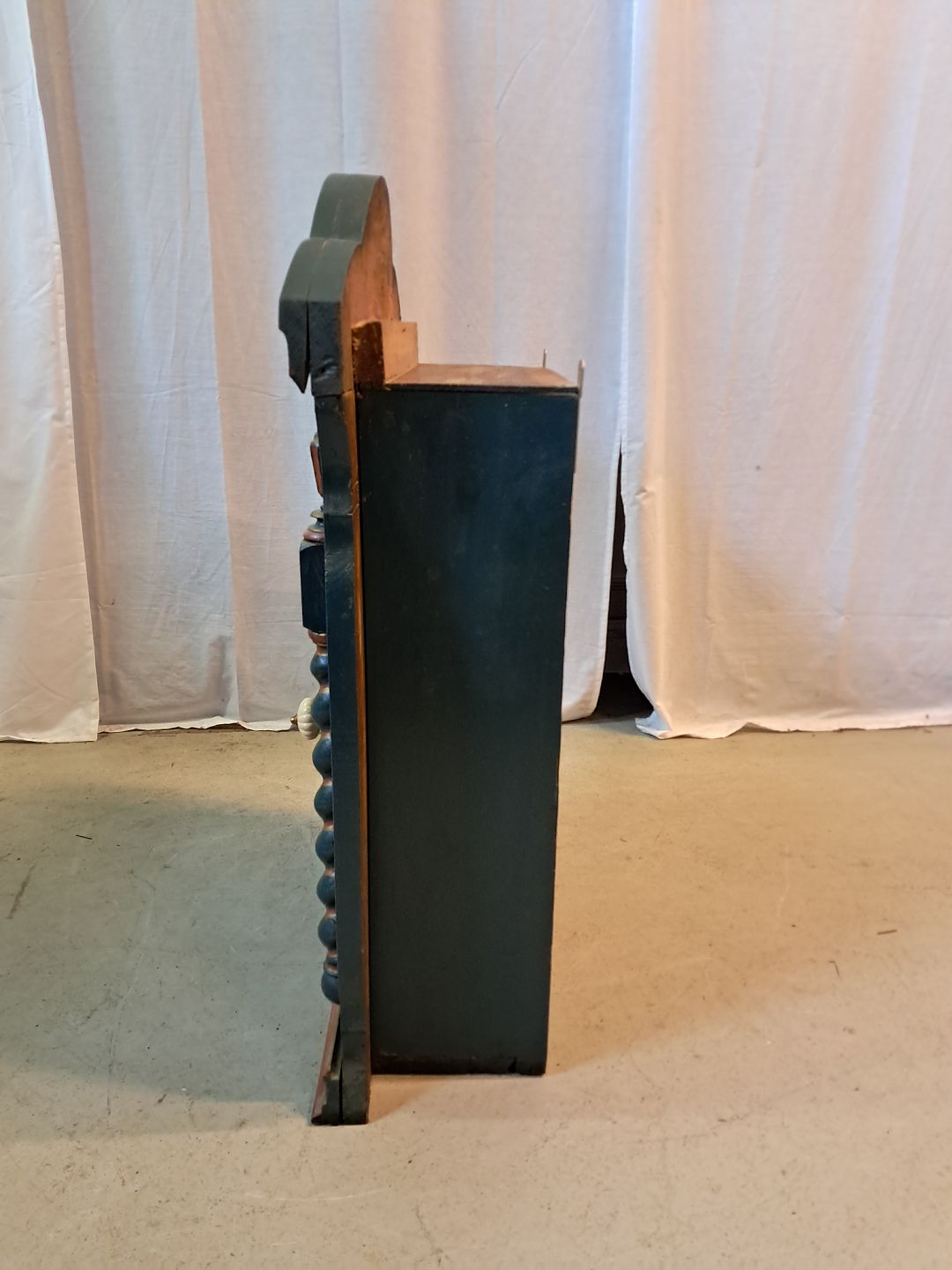 Malet hjørneskab fra 1940erne. Det har brugsspor. Højde 82cm Bredde 54cm Dybde 21cm Emne nummer: 77421