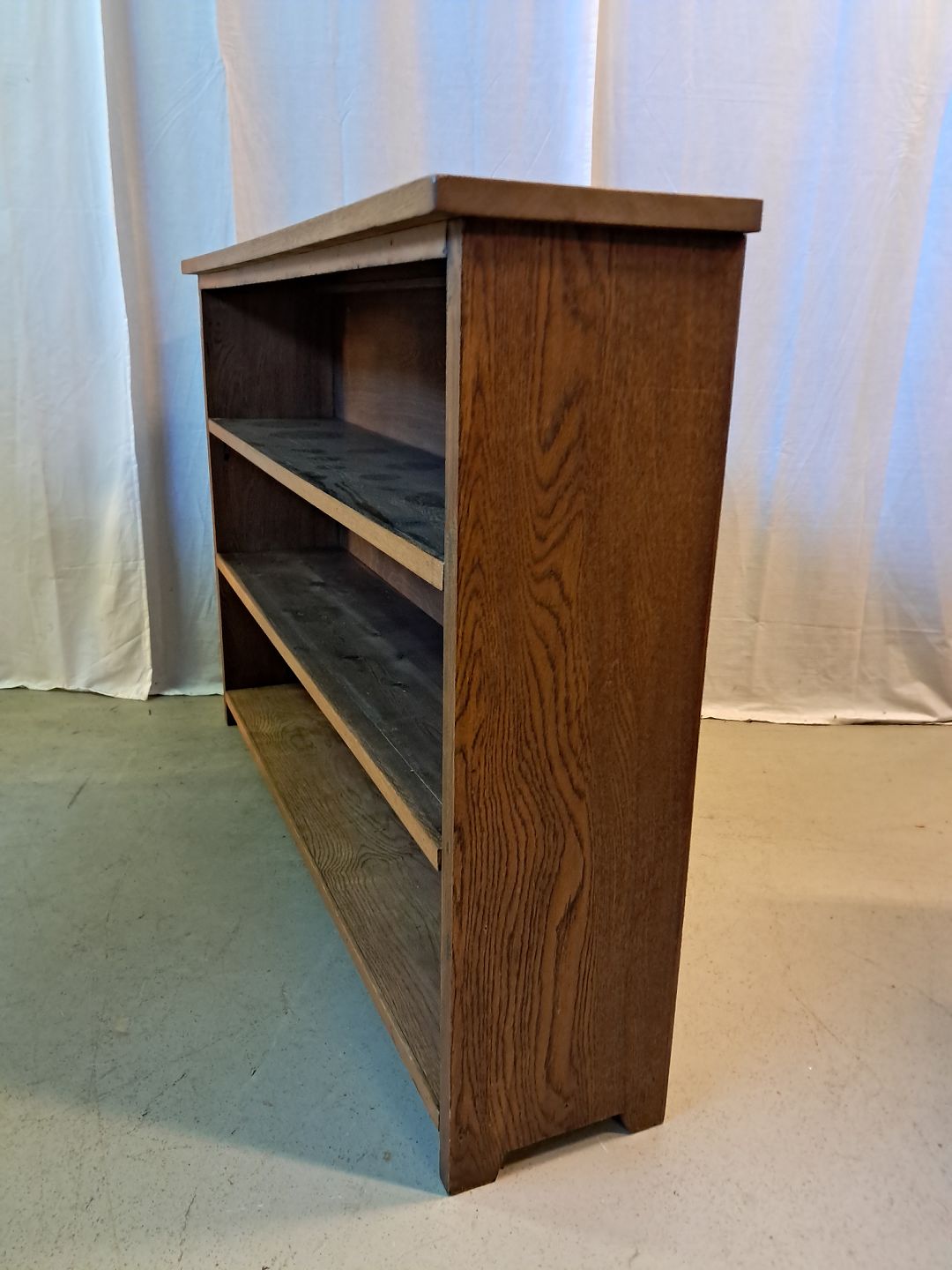 Reol i massivt egtræ, fra 1910erne. Den har brugsspor. Højde 88cm Bredde 128cm Dybde 27cm Emne nummer: 77451