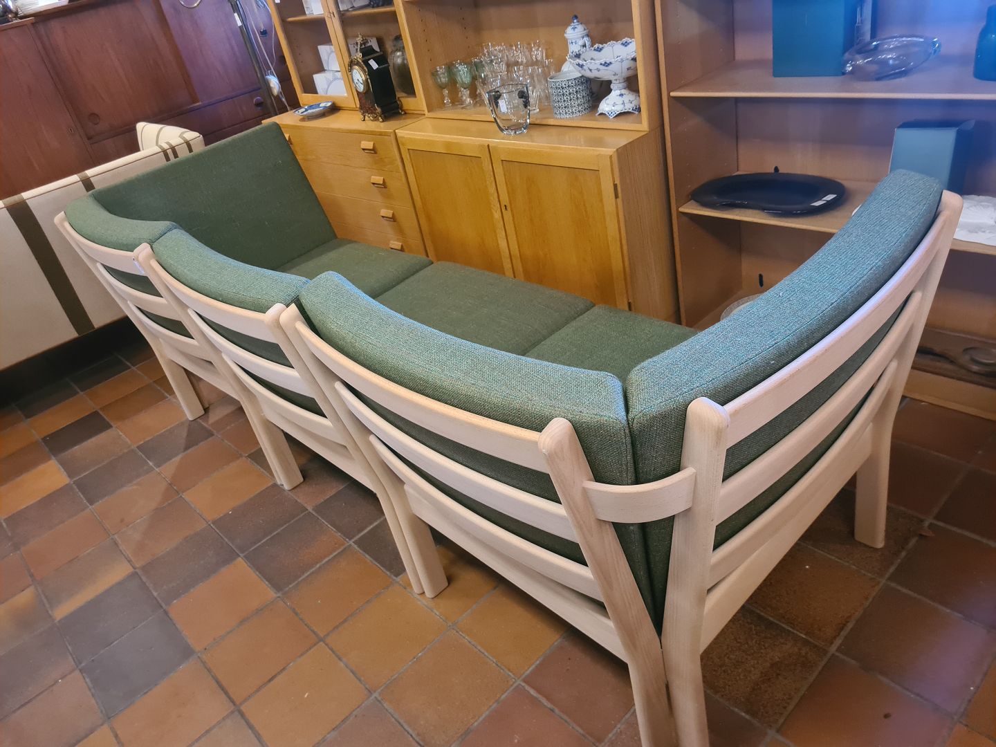 Hans J. Wegner 3. pers modul sofa model GE280 Udført og stemplet hos Getama år 2014. Fremstillet i bøg med hynder i uldstof. Pæn brugt stand. Mål: H. 75 cm. L. 220 cm. D. 78 cm. SH. 39 cm. Emne nummer: 80906