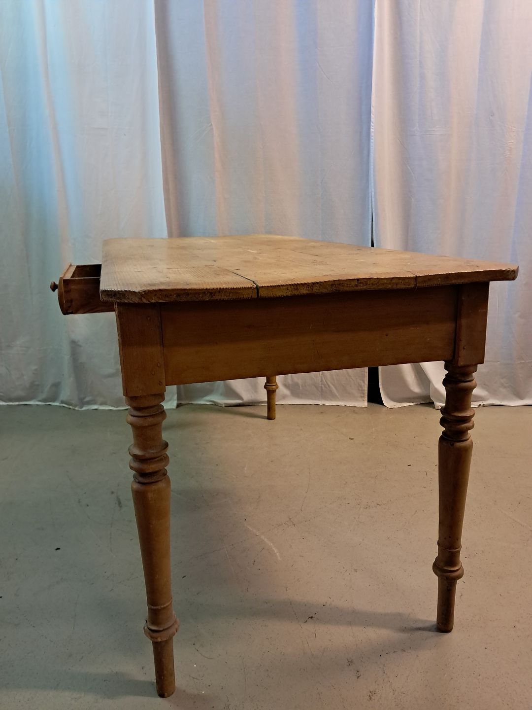 Bord med skuffe i massivt fyrretræ, fra 1910erne. Det har brugsspor. Højde 79cm Bredde 71cm Længde 155cm Emne nummer: 77564