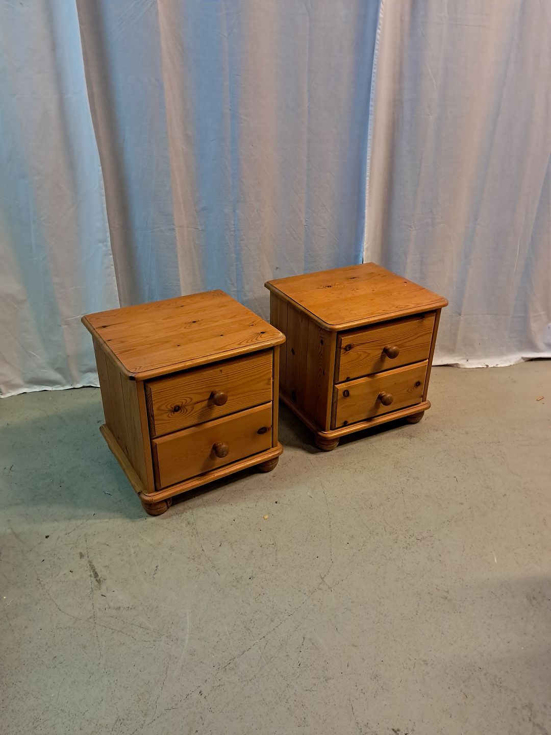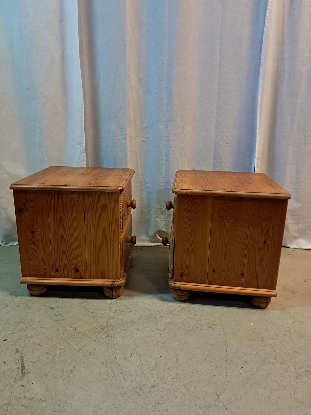 2 Små kommoder i massivt fyrretræ, fra 1980erne. De har brugsspor. Højde 45cm Bredde 44cm Dybde 40cm Emne nummer: 77603