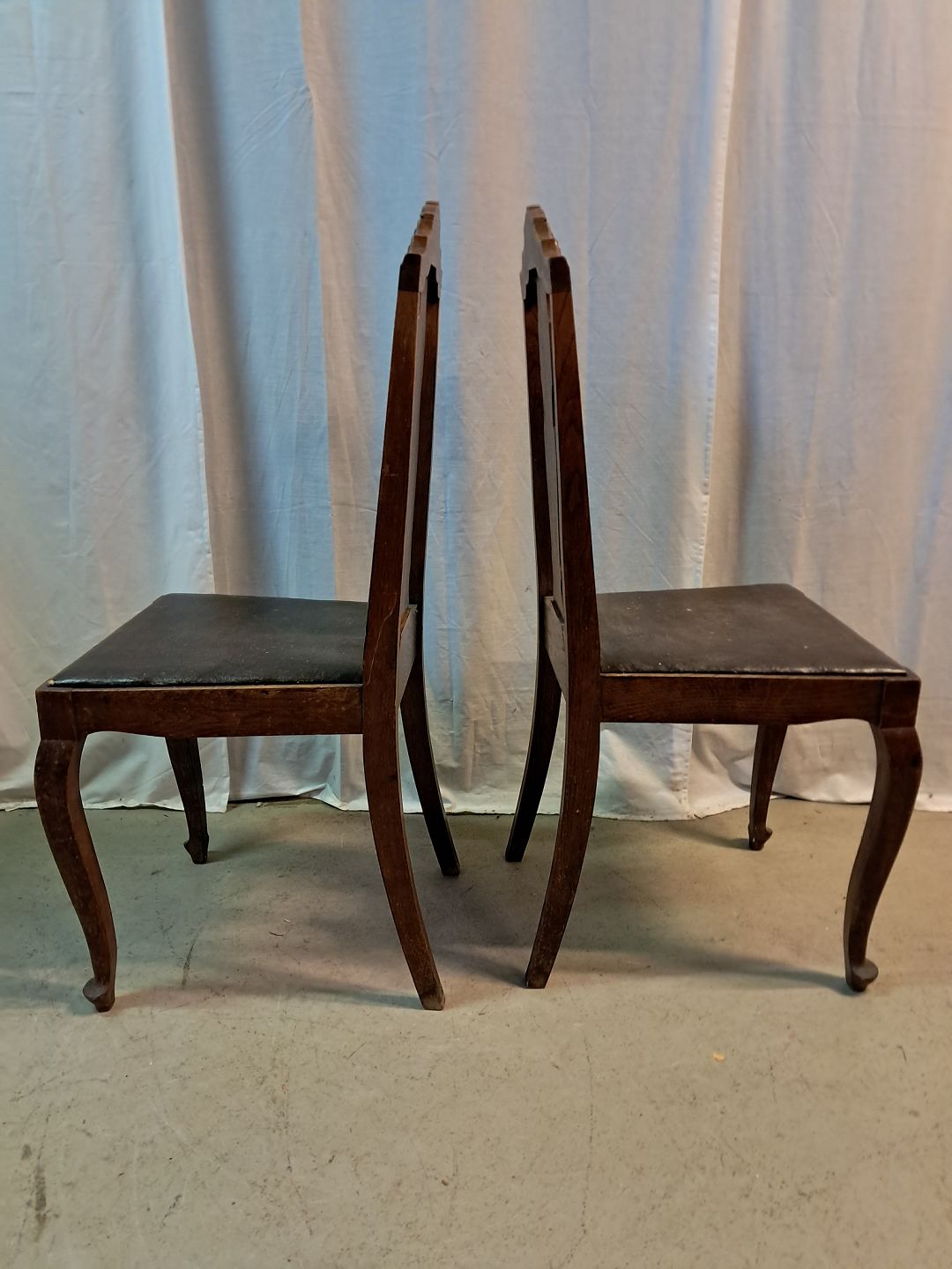 2 Stole i massivt egetræ, fra 1920erne. De har brugsspor. Ryghøjde 103cm Sædehøjde 47cm Emne nummer: 77606