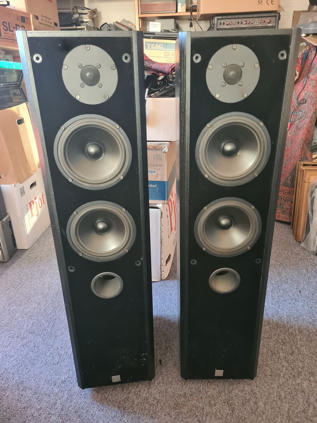 Højtalerpar fra DALI model 400. Testet og lyder fint. Fremstår dog med lidt skrammer på kabinetterne. (Billede) Højde 100 cm. Bredde 24 cm. Dybde 34 cm. Emne nummer: 60686