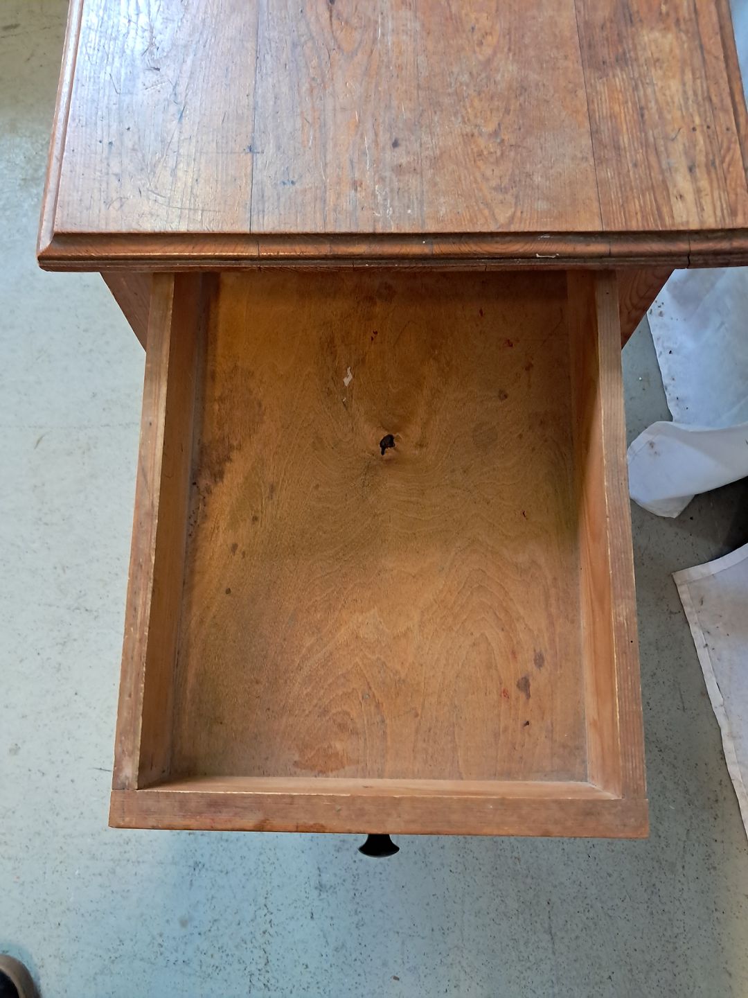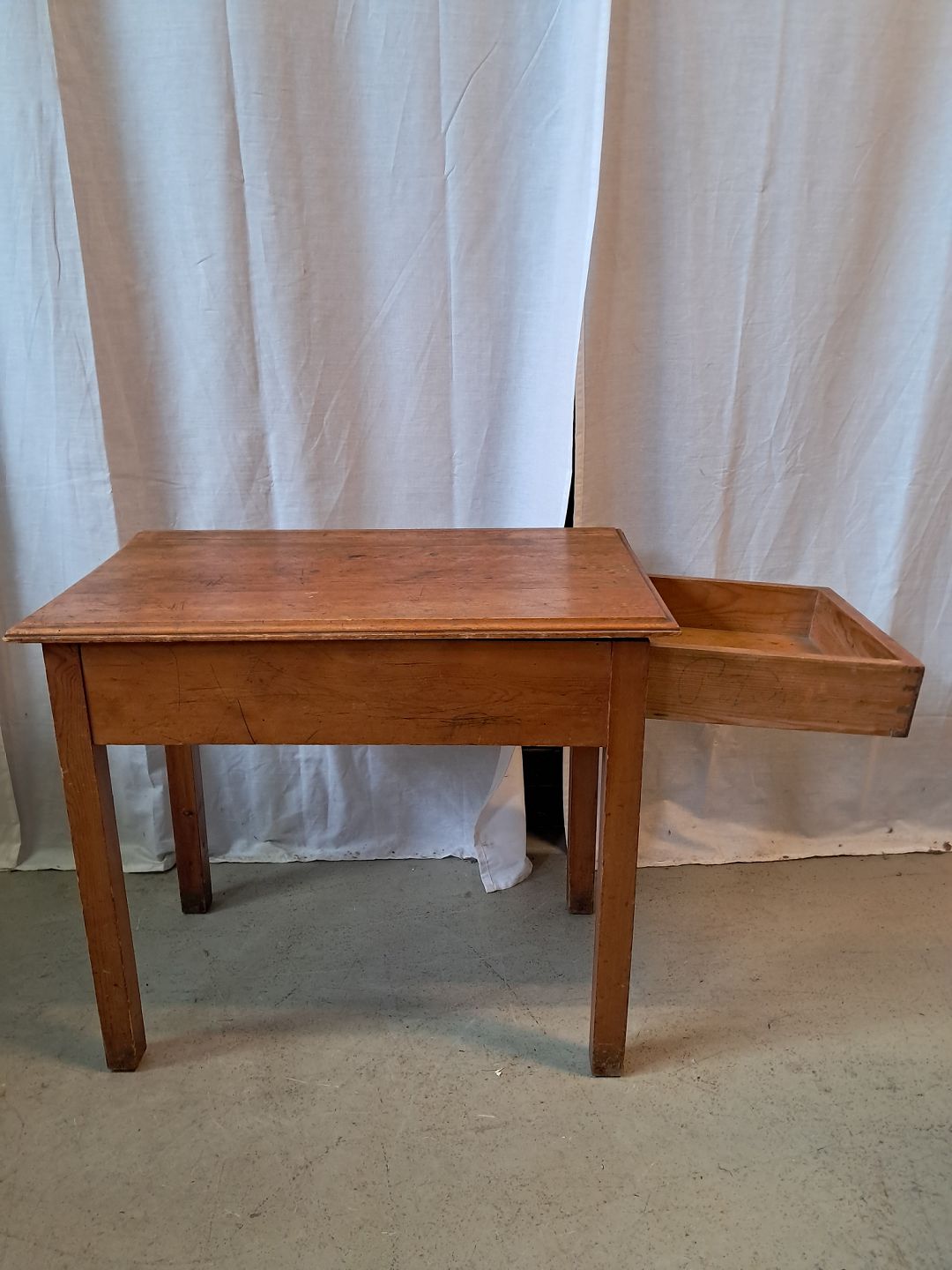 Bord i massivt fyrretræ med skuffe, fra 1940erne.