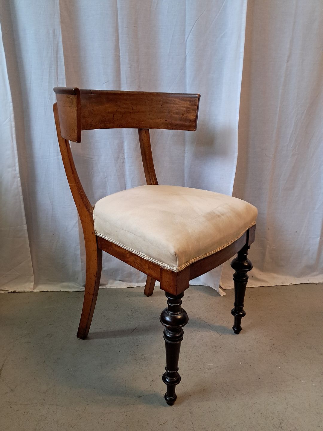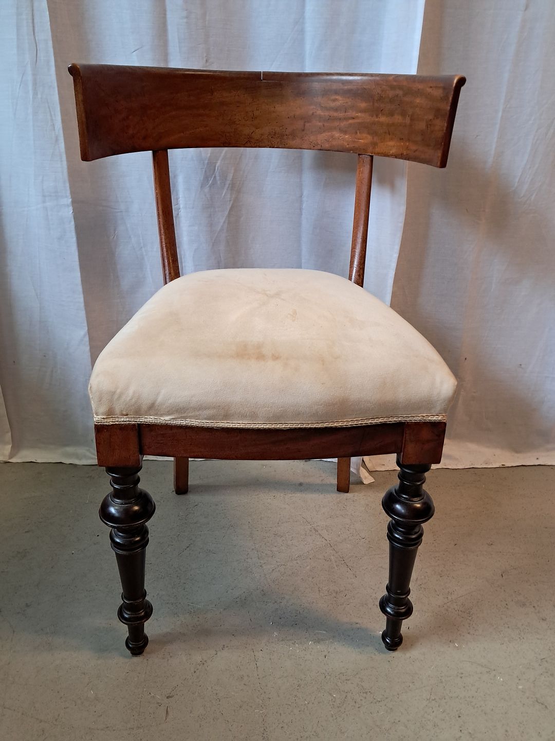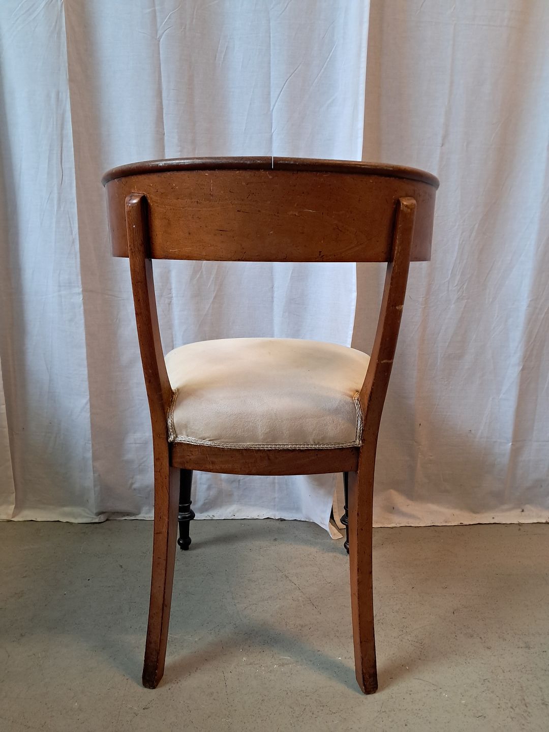 Stol i bøgetræ og fineret nødetræ, fra 1900erne. Den har brugsspor. Ryghøjde 82cm Sædehøjde 50cm Emne nummer: 77634