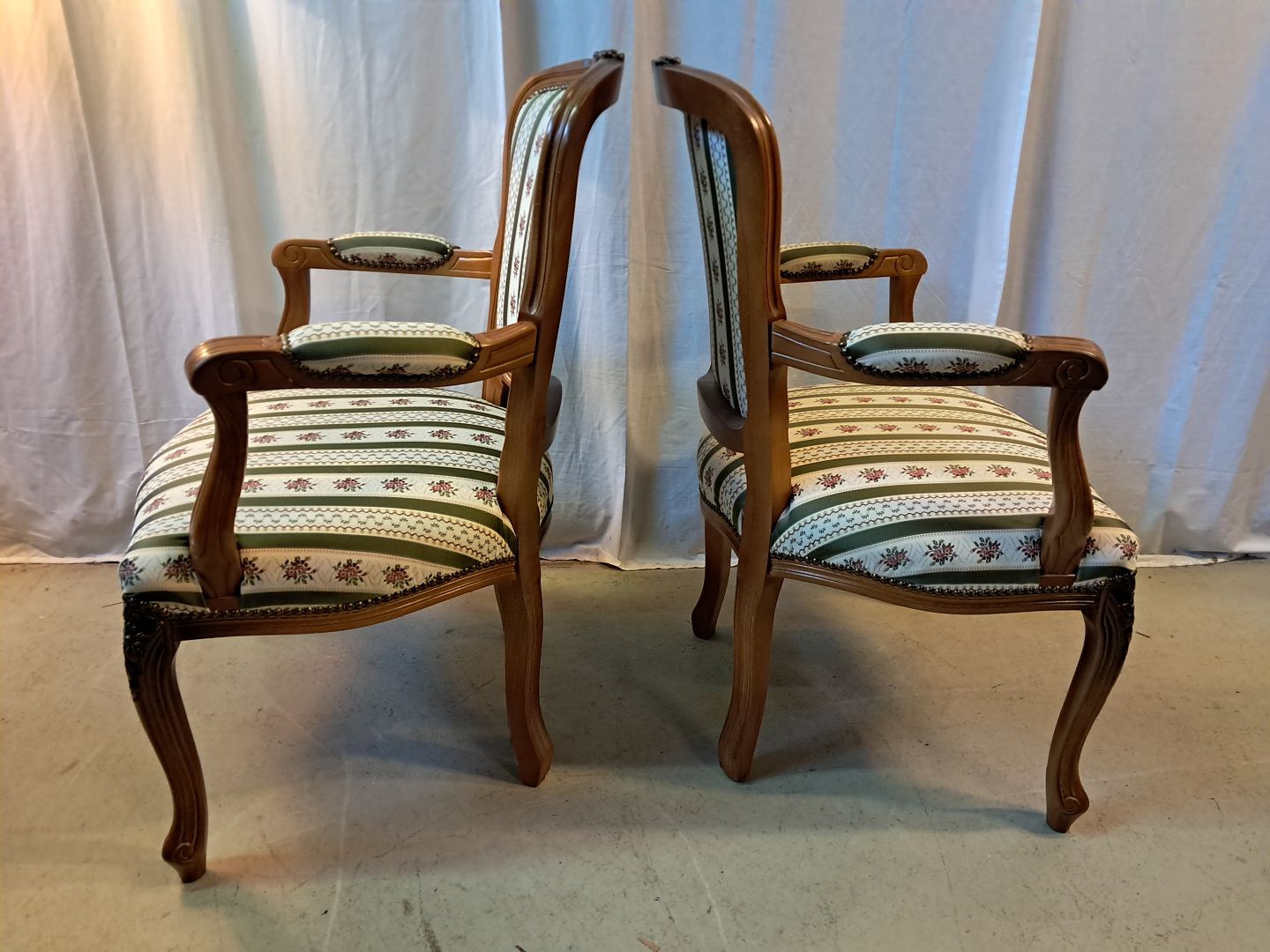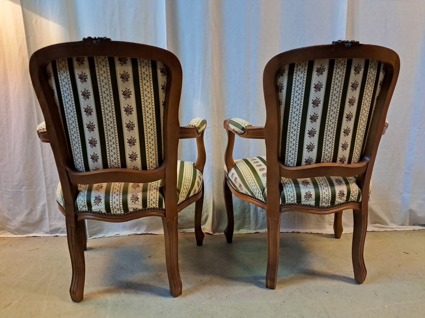 2 Rokokostole i massivt bøgetræ, fra 1980erne. De har brugsspor. Ryghøjde 90cm Sædehøjde 44cm Emne nummer: 77665