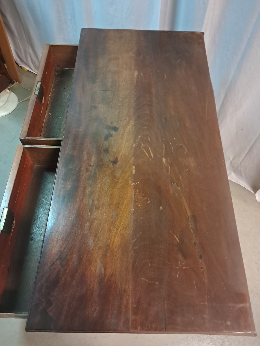 Kommode i fineret mahogni, fra 1920erne. Den har defekte lister, finer og brugsspor. Højde 96cm Bredde 197cm Dybde 50cm Emne nummer: 77672