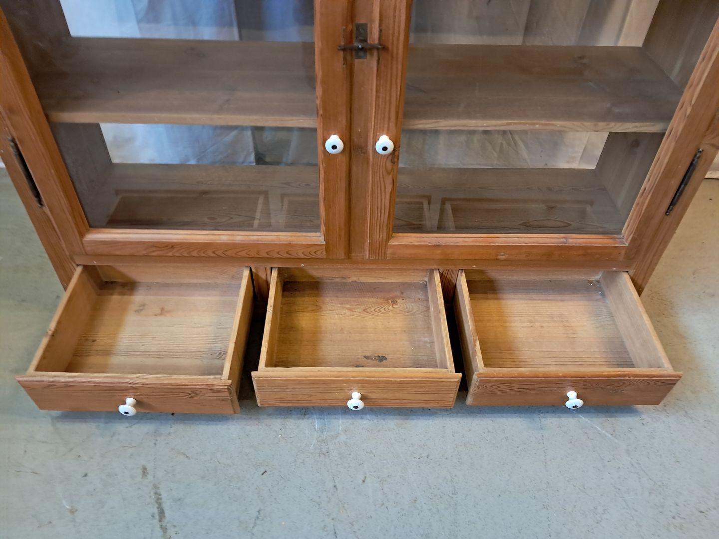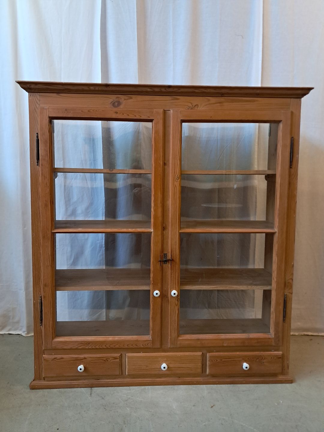 Gammelt køkkenskab i massivt fyrretræ, fra 1910erne. Det har brugsspor. Højde 126cm Bredde 117cm Dybde 35cm Emne nummer: 77719