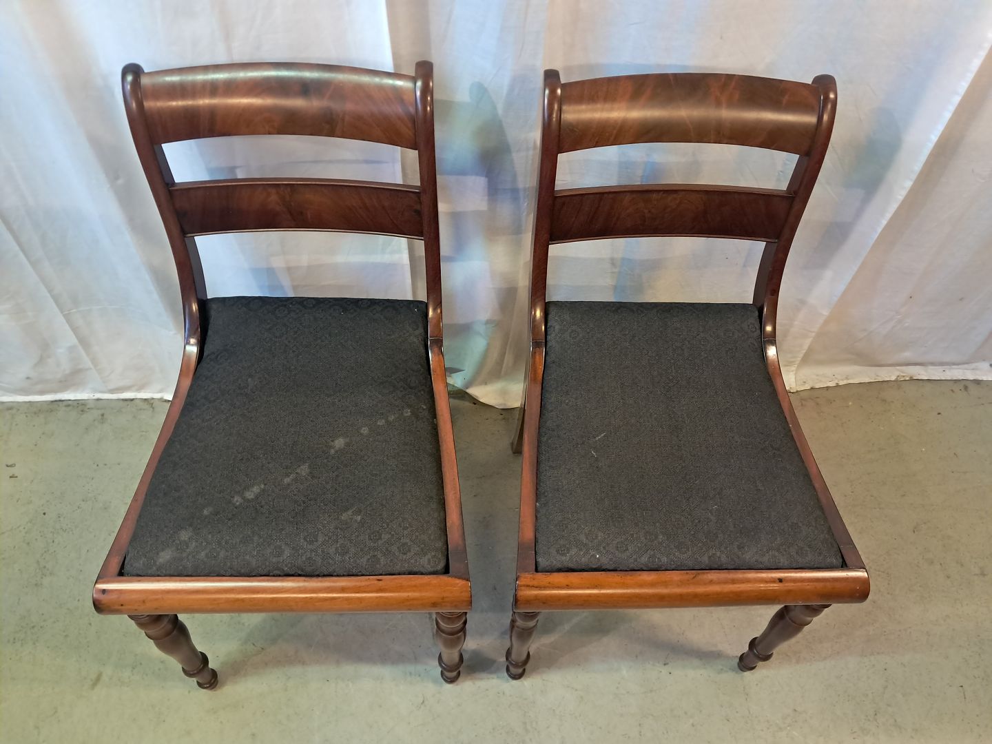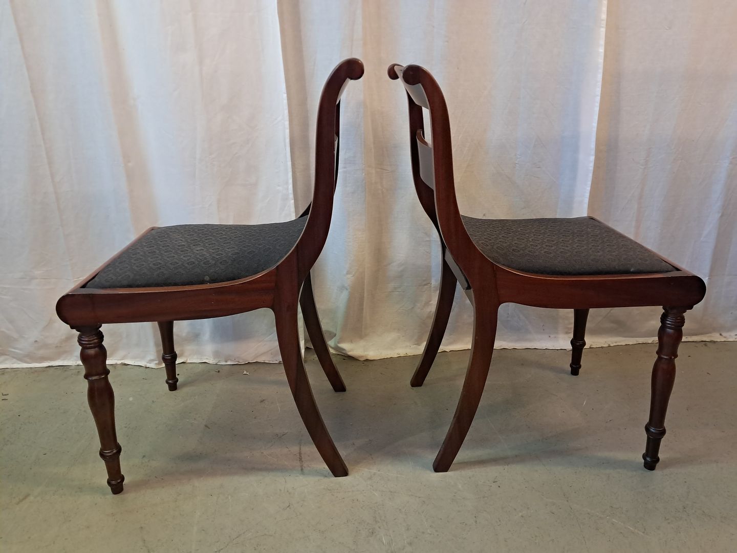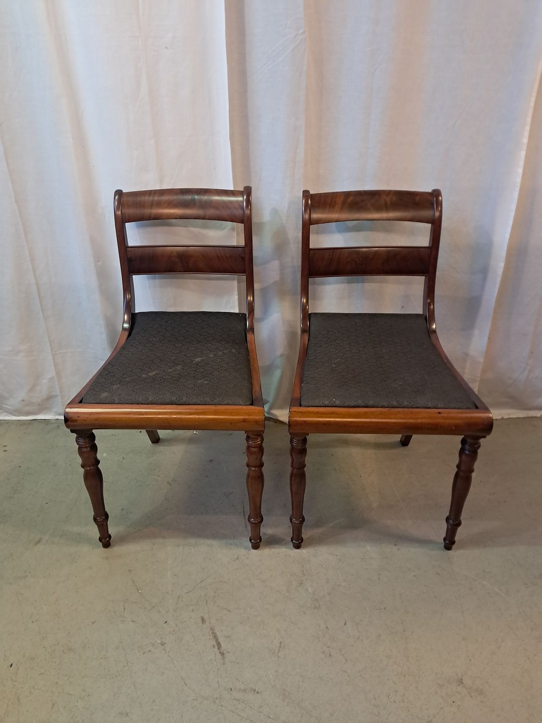 2 Salonstole i massivt mahogni og bøgetræ, fra 1910erne. De har brugsspor. Ryghøjde 86cm Sædehøjde 47cm Emne nummer: 77733