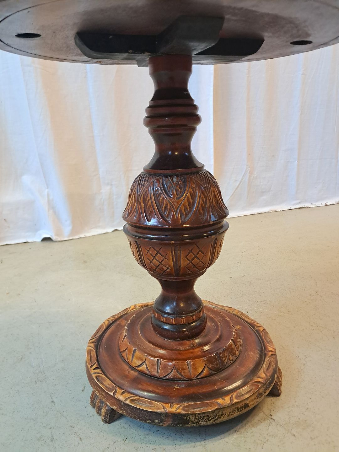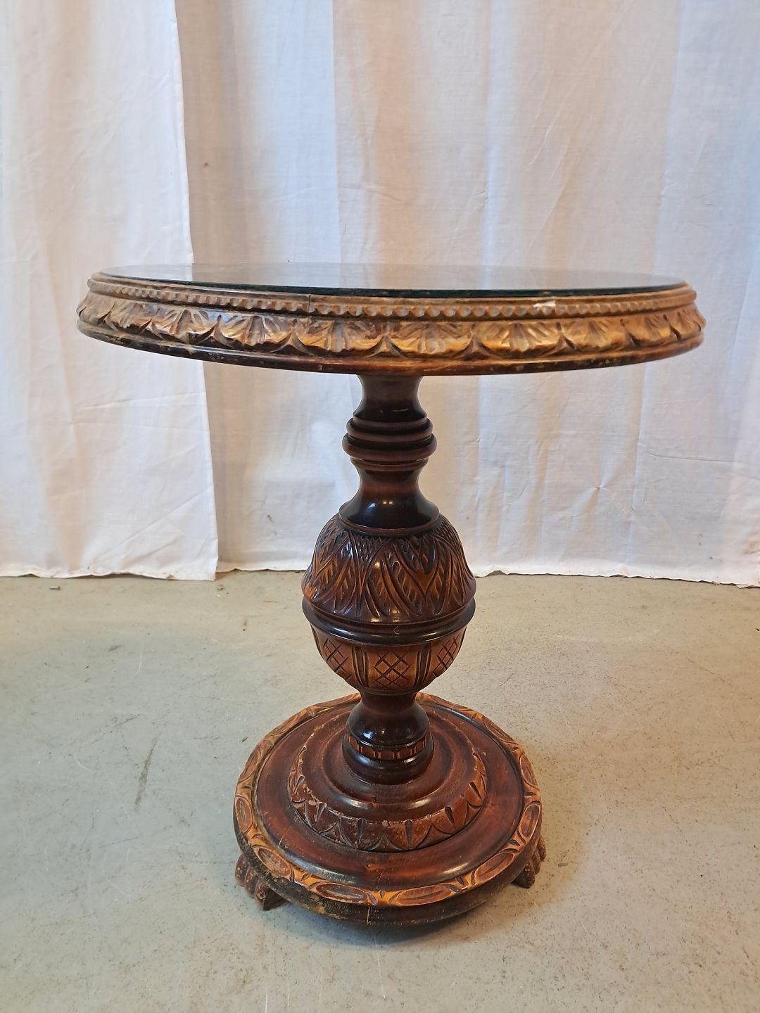 Lampebord i birketræ med glasplade, fra 1930erne. Det har defekter. Højde 52cm Diameter 46cm Emne nummer: 77739
