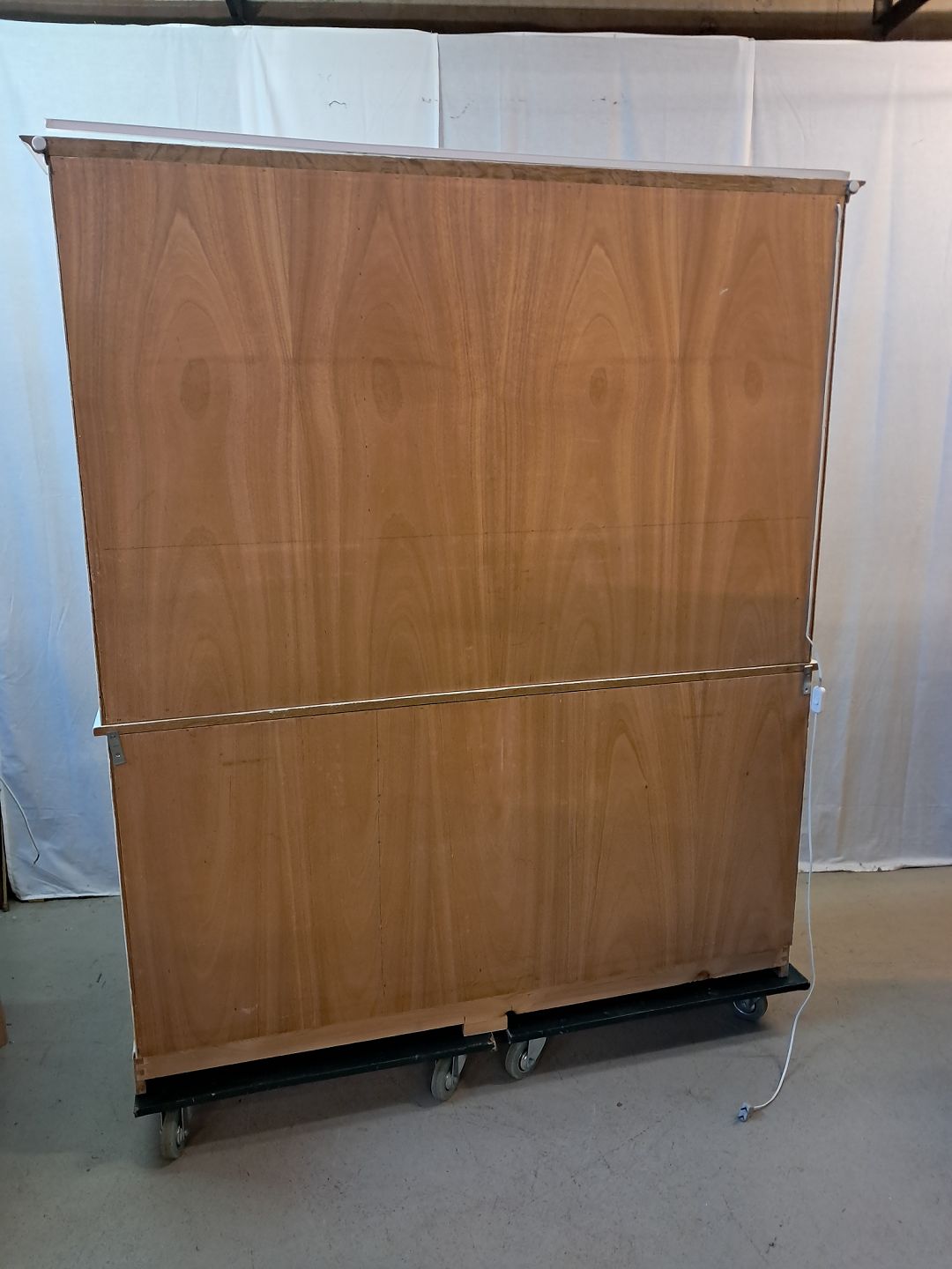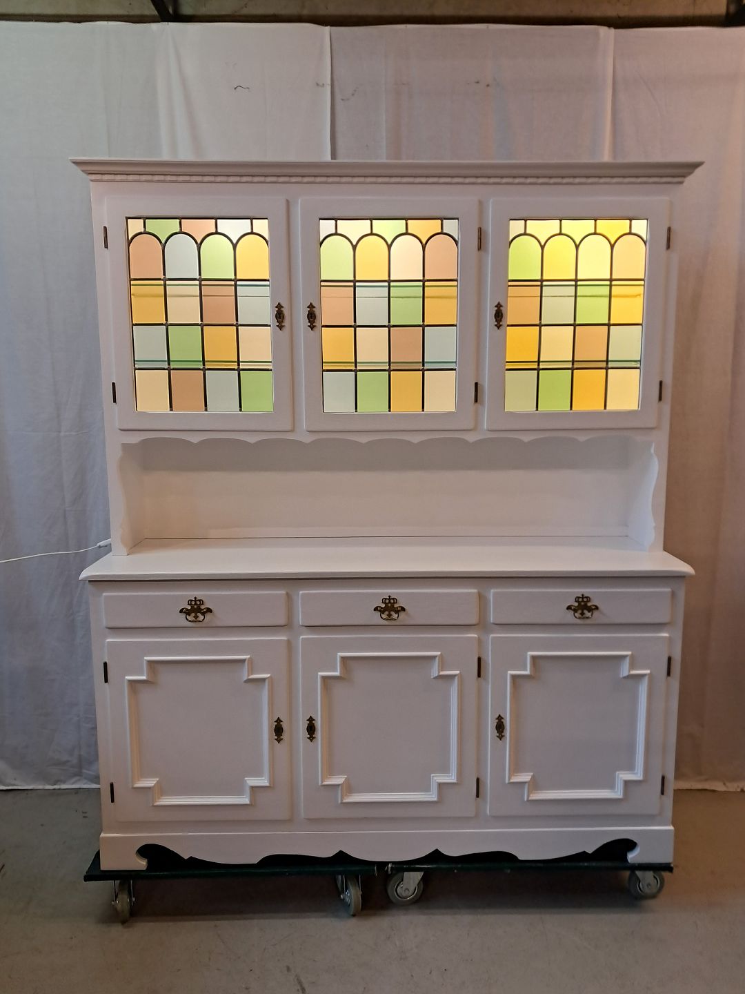 Malet skab med vitrineoverdel, fra 1980erne. Det har brugsspor. Højde 180cm Bredde 153cm Dybder 44cm og 25cm Emne nummer: 777444