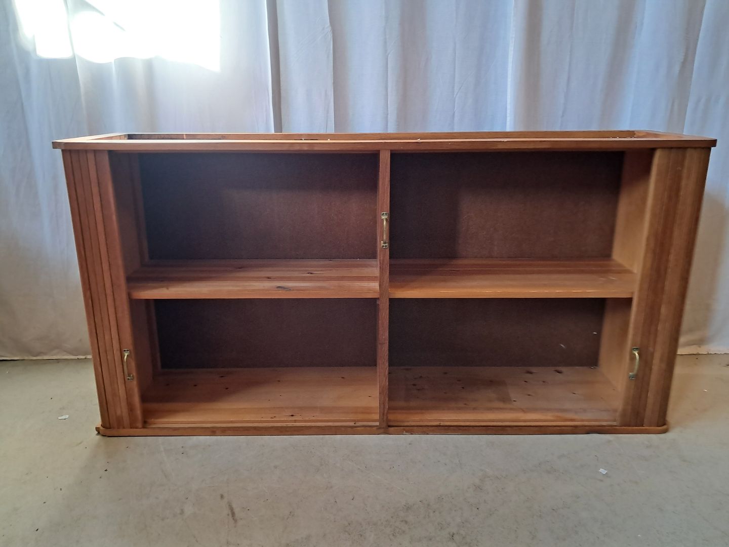 Jalousiskab i fineret egetræ, fra 1950erne. Det har brugsspor og defekter. Højde 89cm Bredde 180cm Dybde 44cm Se emne nr. 77815 og 77884 Emne nummer: 77814