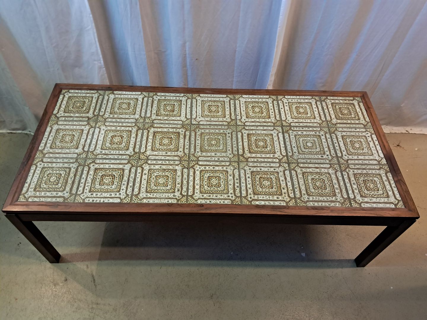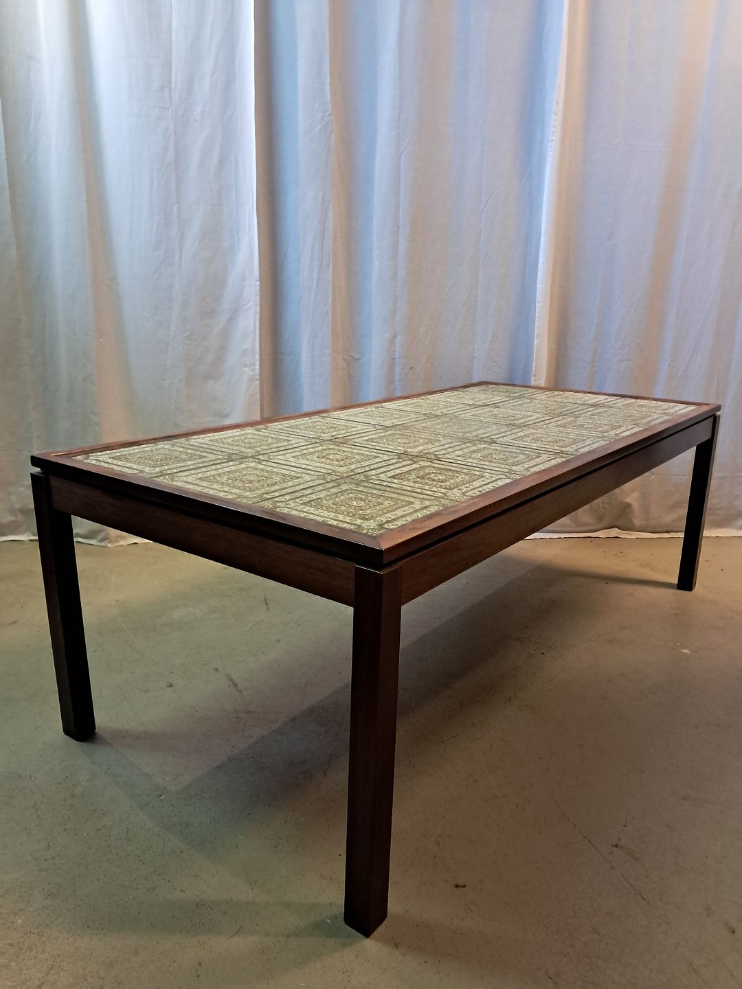 Sofabord i palisander med kakler, fra 1960erne. Det har brugsspor. Højde 50cm Bredde 69cm Længde 150cm Emne nummer: 77816