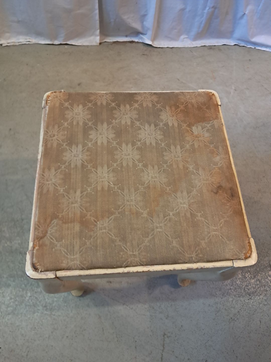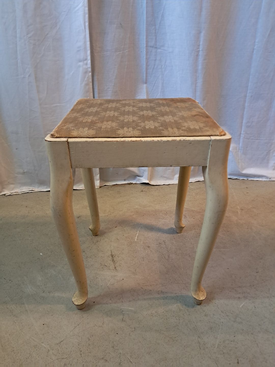 Malet skammel fra 1920erne. Den har brugsspor og defekt betræk. Højde 46cm Bredde 35cm Dybde 35cm Emne nummer: 77851