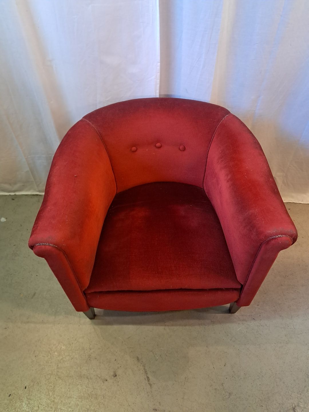 Lænestol med velourbetræk, fra 1920erne. Den har brugsspor. Ryghøjde 68cm Sædehøjde 40cm Emne nummer: 77858