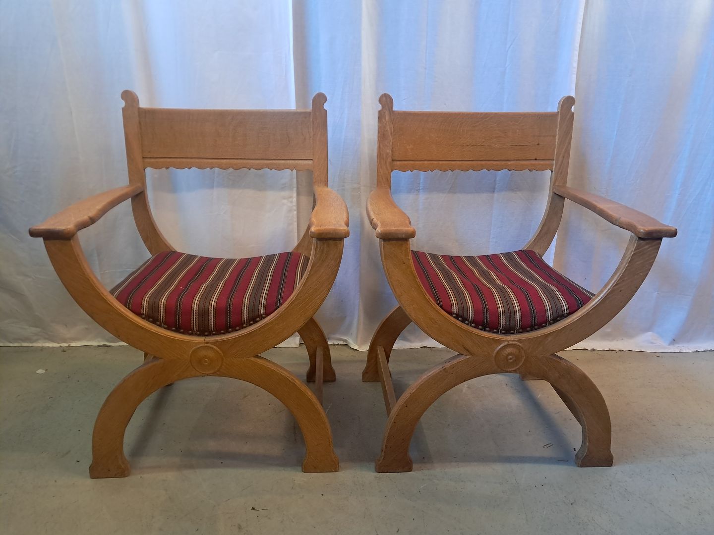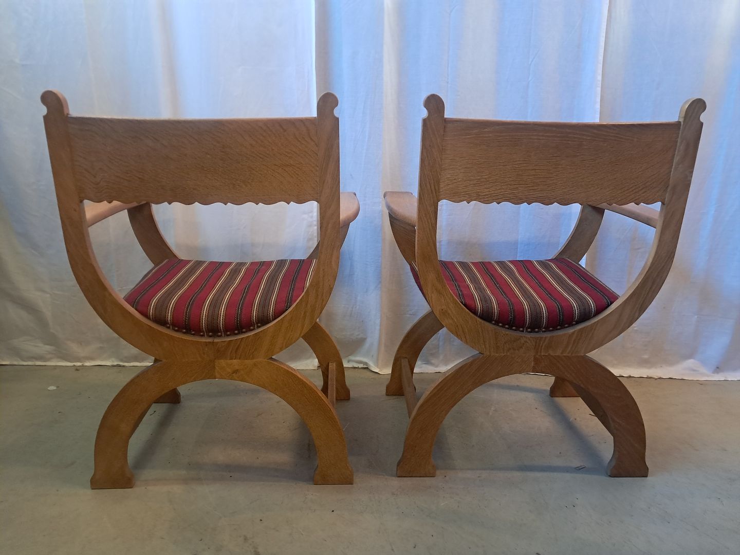 2 Armstole i massivt egetræ, fra 1980erne. De har brugsspor. Ryghøjde 88cm Sædehøjde 45cm Emne nummer: 77863