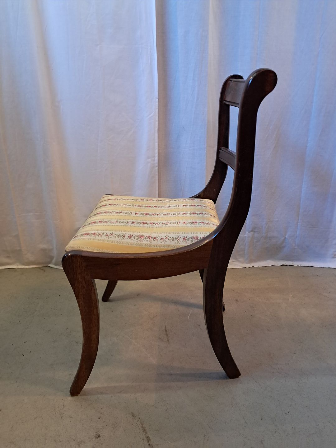 Stol i massivt mahogni, fra 1980erne. Den har brugsspor. Ryghøjde 86cm Sædehøjde 45cm Emne nummer: 77880