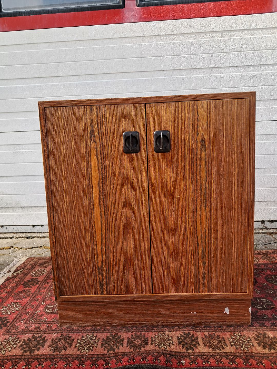 Skab i fineret palisander, fra 1970erne. Det har brugsspor. Højde 71cm Bredde 60cm Dybde 40cm Emne nummer: 77895
