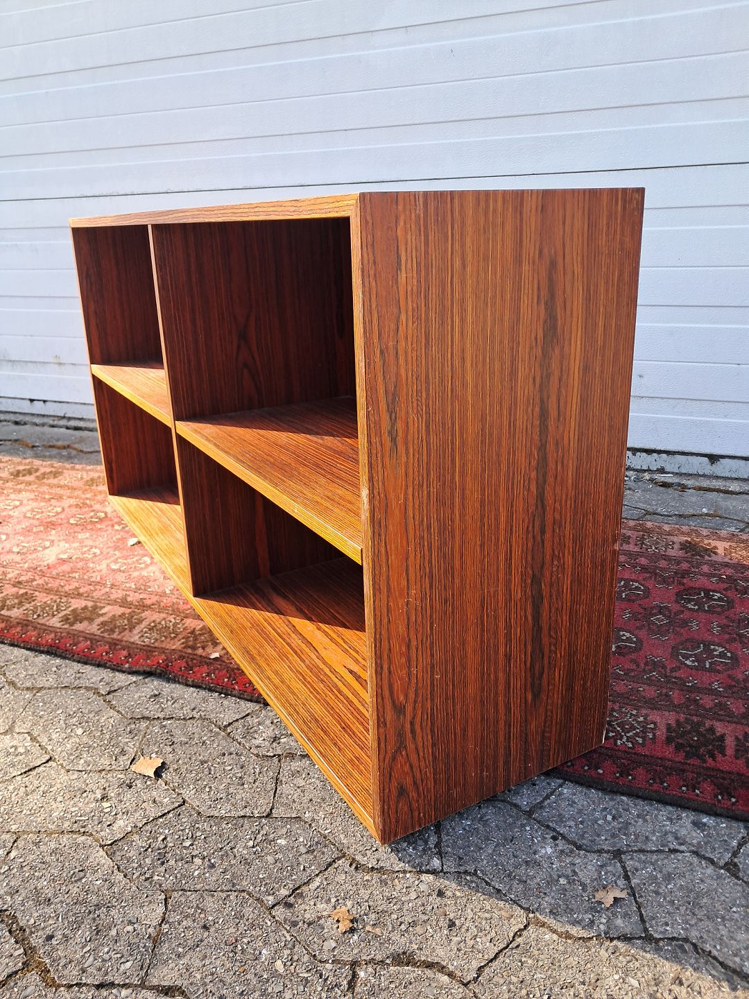 Reol i fineret palisander, fra 1970erne. Den har brugsspor. Højde 60cm Bredde 120cm Dybde 30cm Emne nummer: 77897