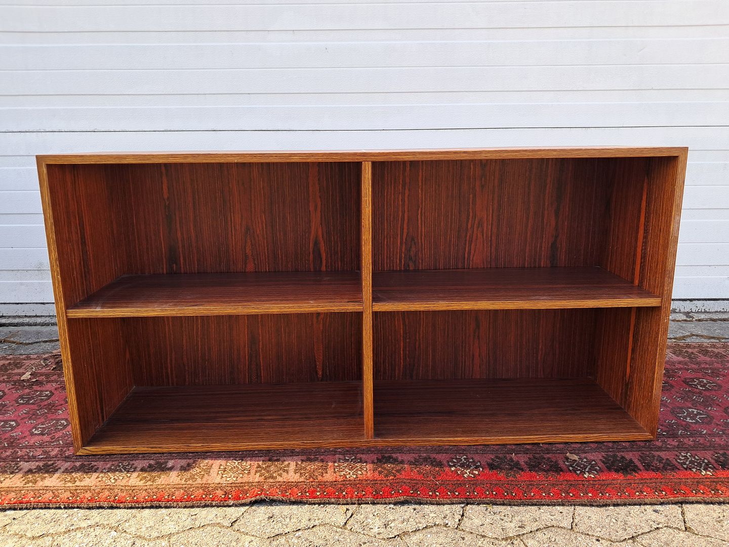Reol i fineret palisander, fra 1970erne. Den har brugsspor. Højde 60cm Bredde 120cm Dybde 30cm Emne nummer: 77898