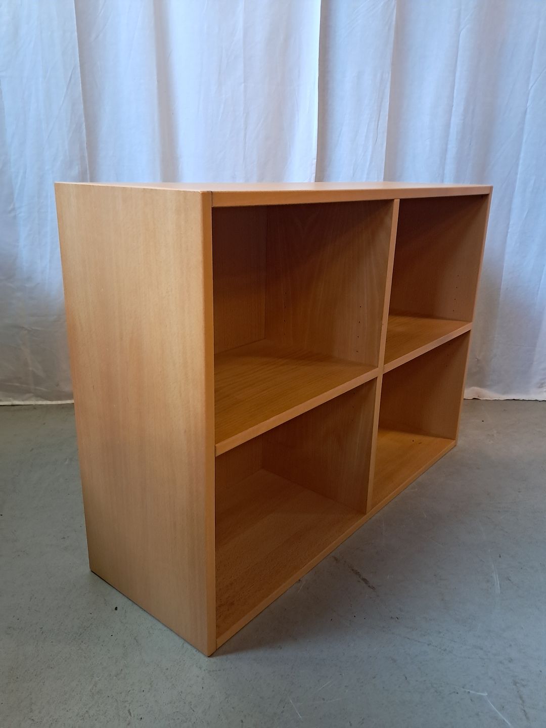 Reol i fineret bøgetræ, fra 1990erne. Den har brugsspor. Højde 73cm Bredde 102cm Dybde 33cm Emne nummer: 77912