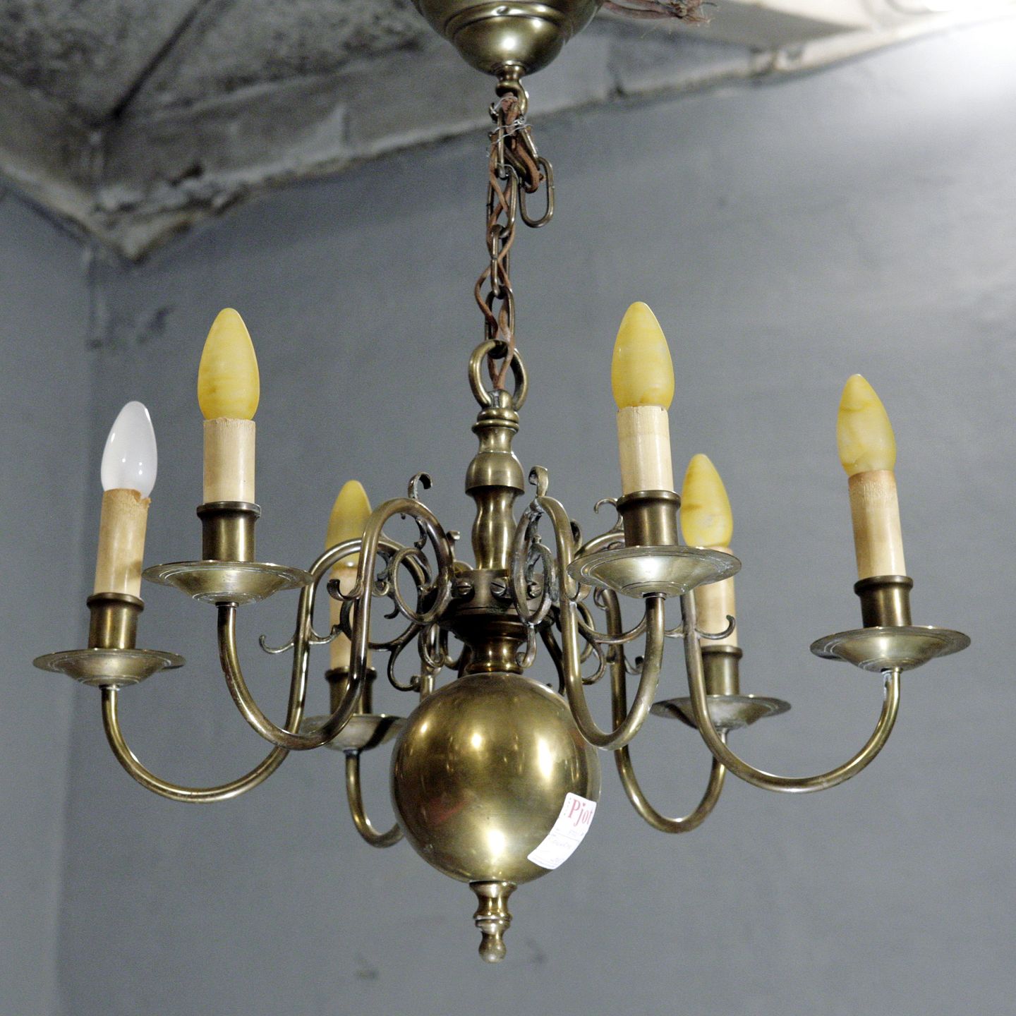 6-armet kirkekrone i bruneret messing, 60 cm i diameter, ca. 1950