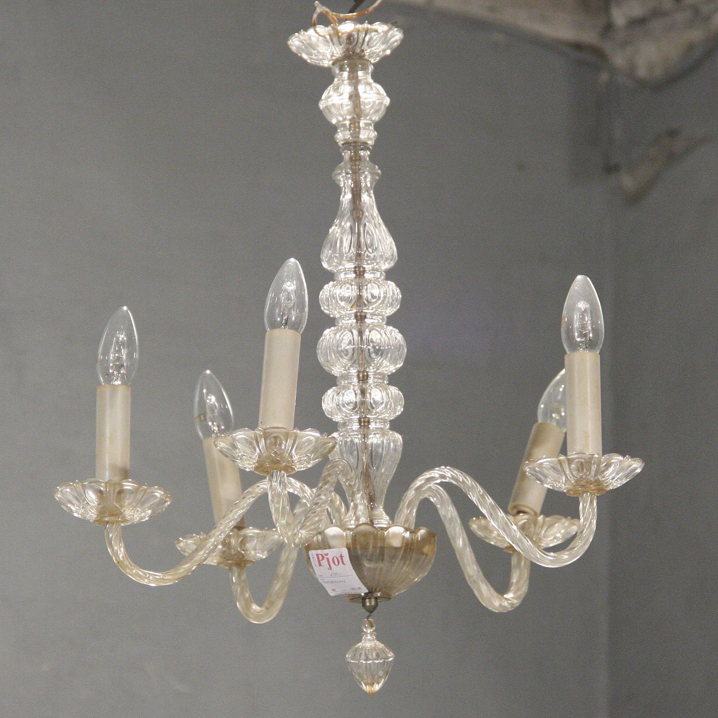 5-armet glaslysekrone, 50 cm i diameter, 1950-1960 Den trænger til en kærlig hånd. Emne nummer: 36138