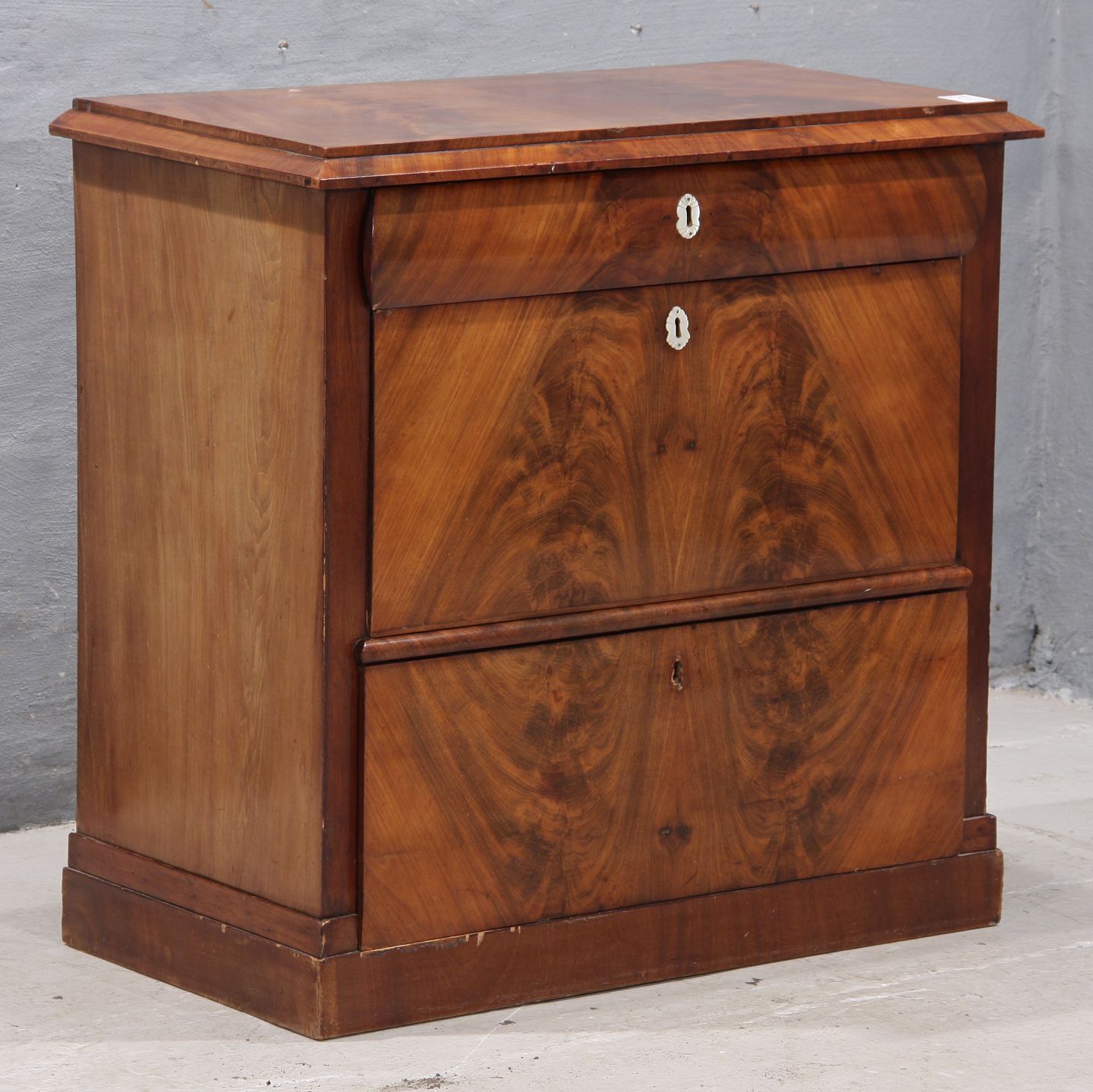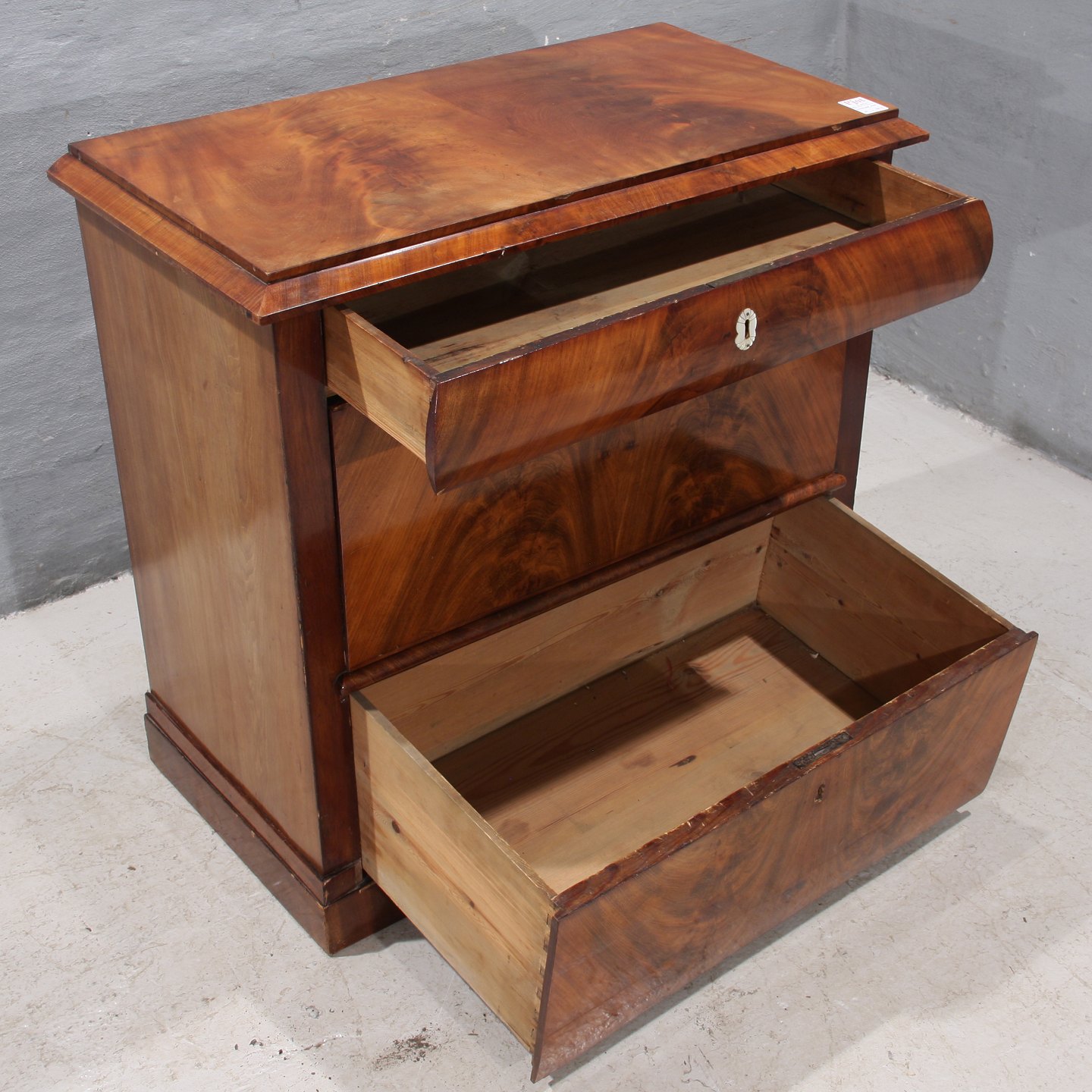 Kommode i mahogni m. 3 skuffer, (HxBxD 88x90x48 cm), ca. 1880