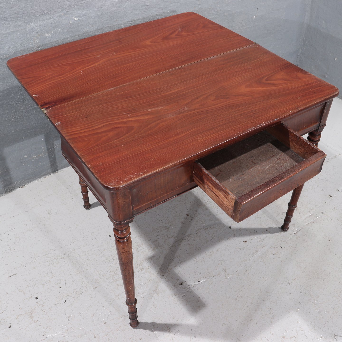 Spillebord i mahogni m. drejede ben, (HxBxD 78x95x46[92] cm), ca. 1890